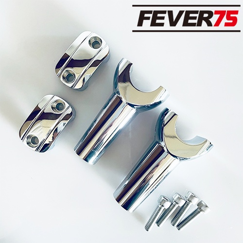 Fever75 哈雷把手冠座 4"高1-1/4"孔徑雙條銀邊復古亮銀款