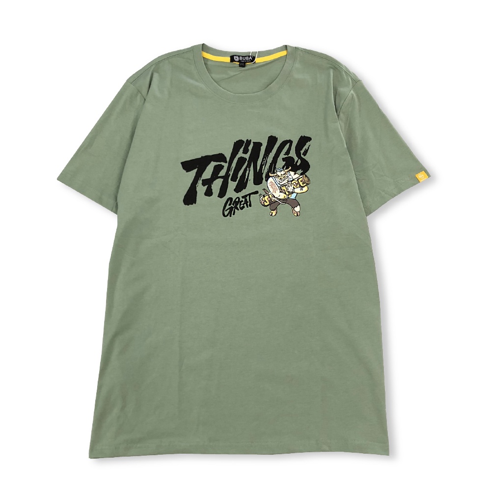 【BUBA大尺碼】灰綠色奔放牛短袖T 2L~6L 加大尺碼 超大 免運 棉T11732-41