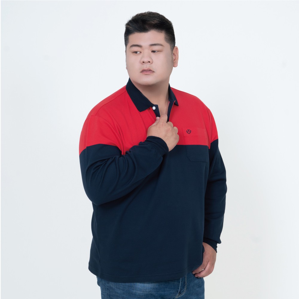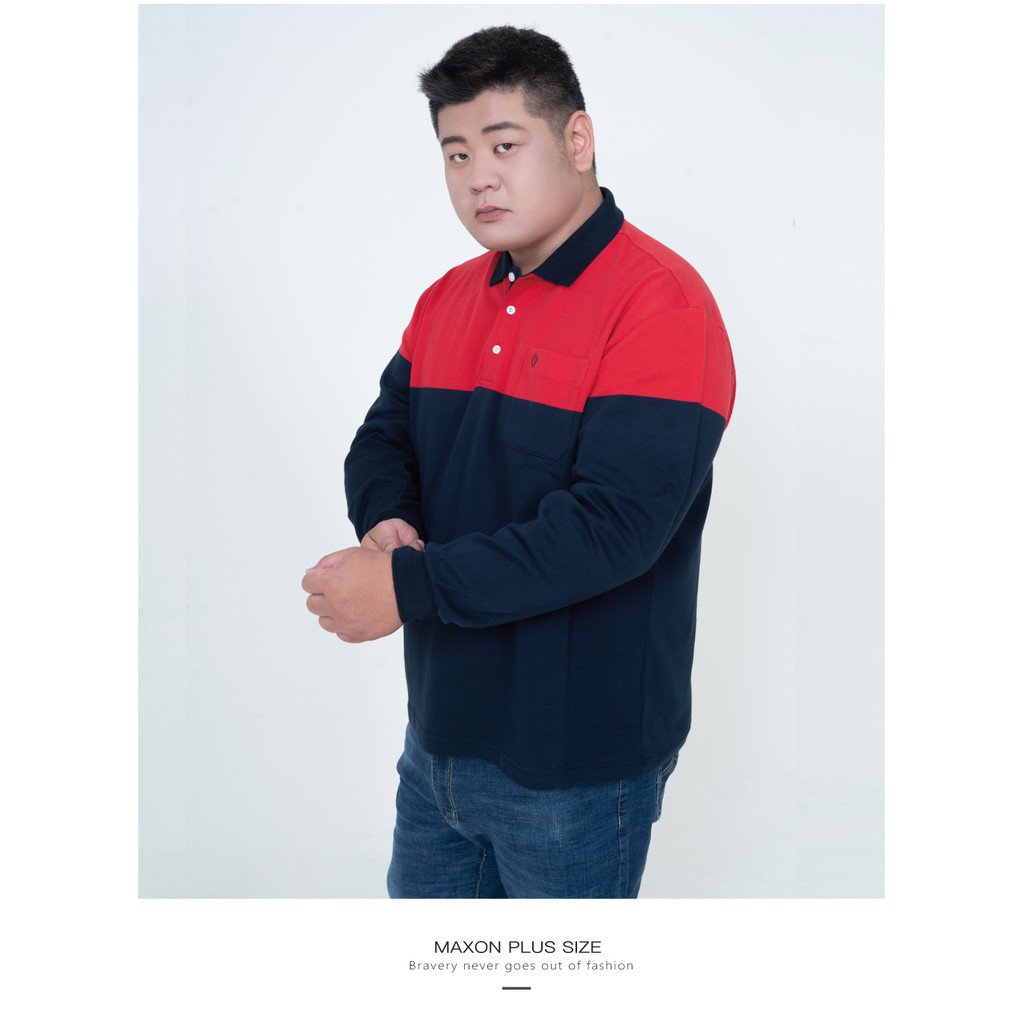 【MAXON大尺碼】台灣製/深藍紅棉柔長袖POLO衫XL-4L 83809-18 加大尺碼 特價 免運