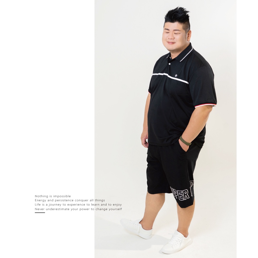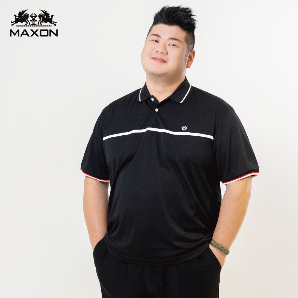 【MAXON大尺碼】台灣製黑色白條網眼排汗短袖POLO衫XL~6L 加大尺碼 免運91766-88