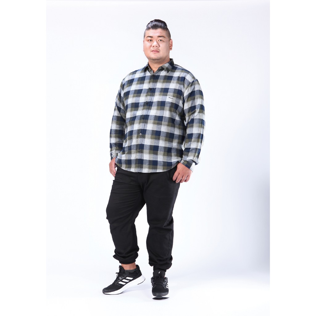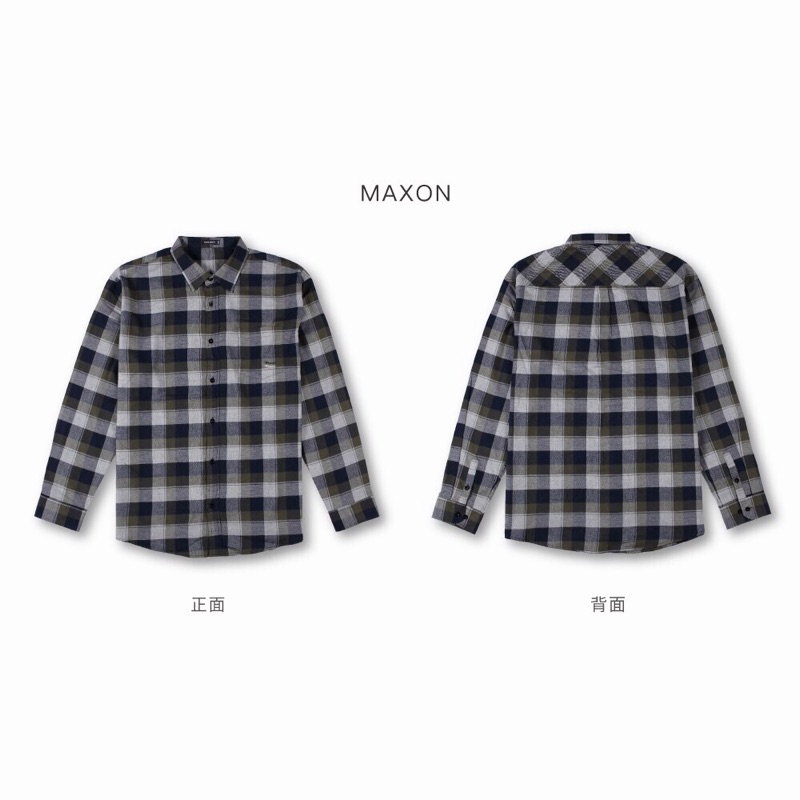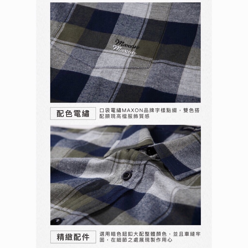 【MAXON大尺碼】藍綠格繡字純棉法蘭絨長袖襯衫2XL~5XL 繡字 純棉 法蘭絨 超取免運82383-45