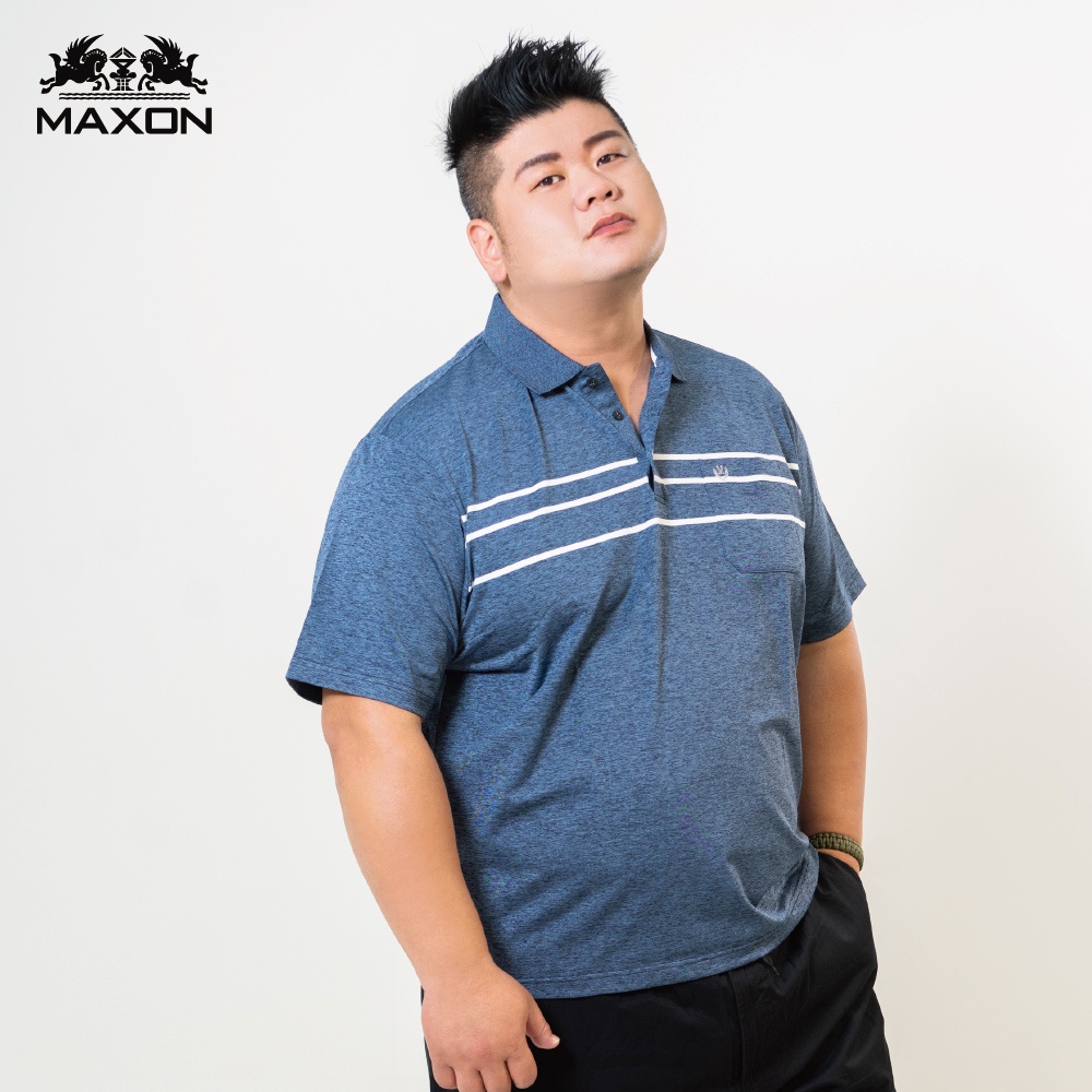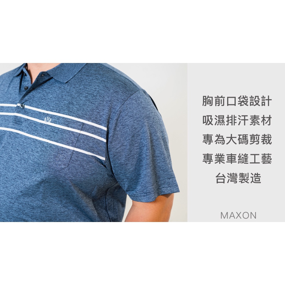 【MAXON大尺碼】台灣製湖藍條紋排汗彈性POLO衫XL~6L加大尺碼 免運 91776-56