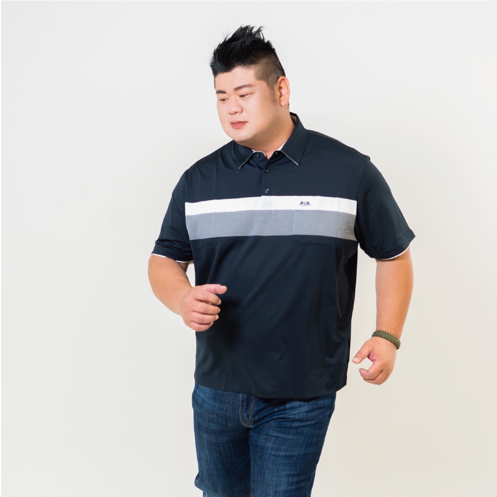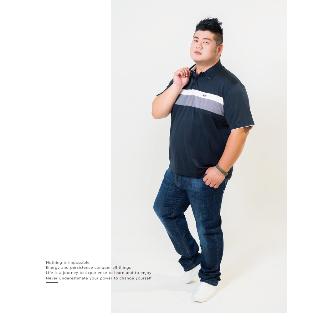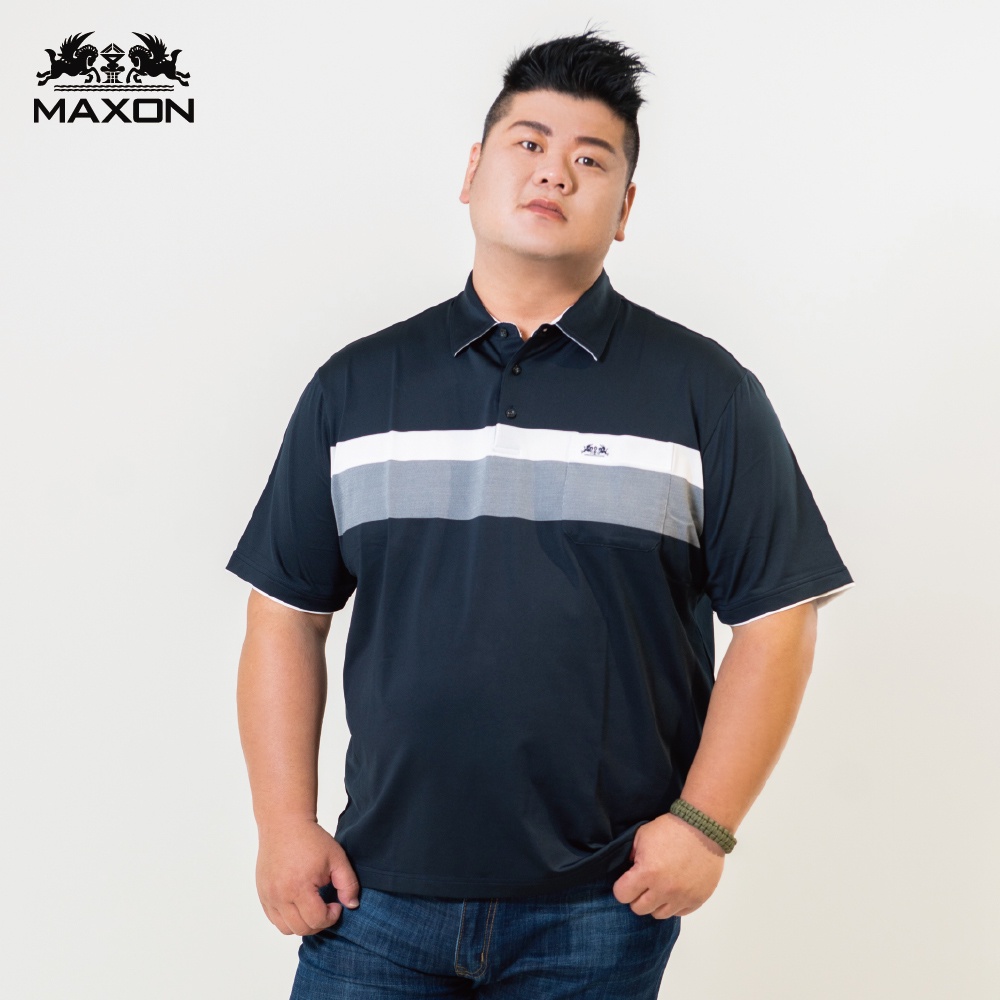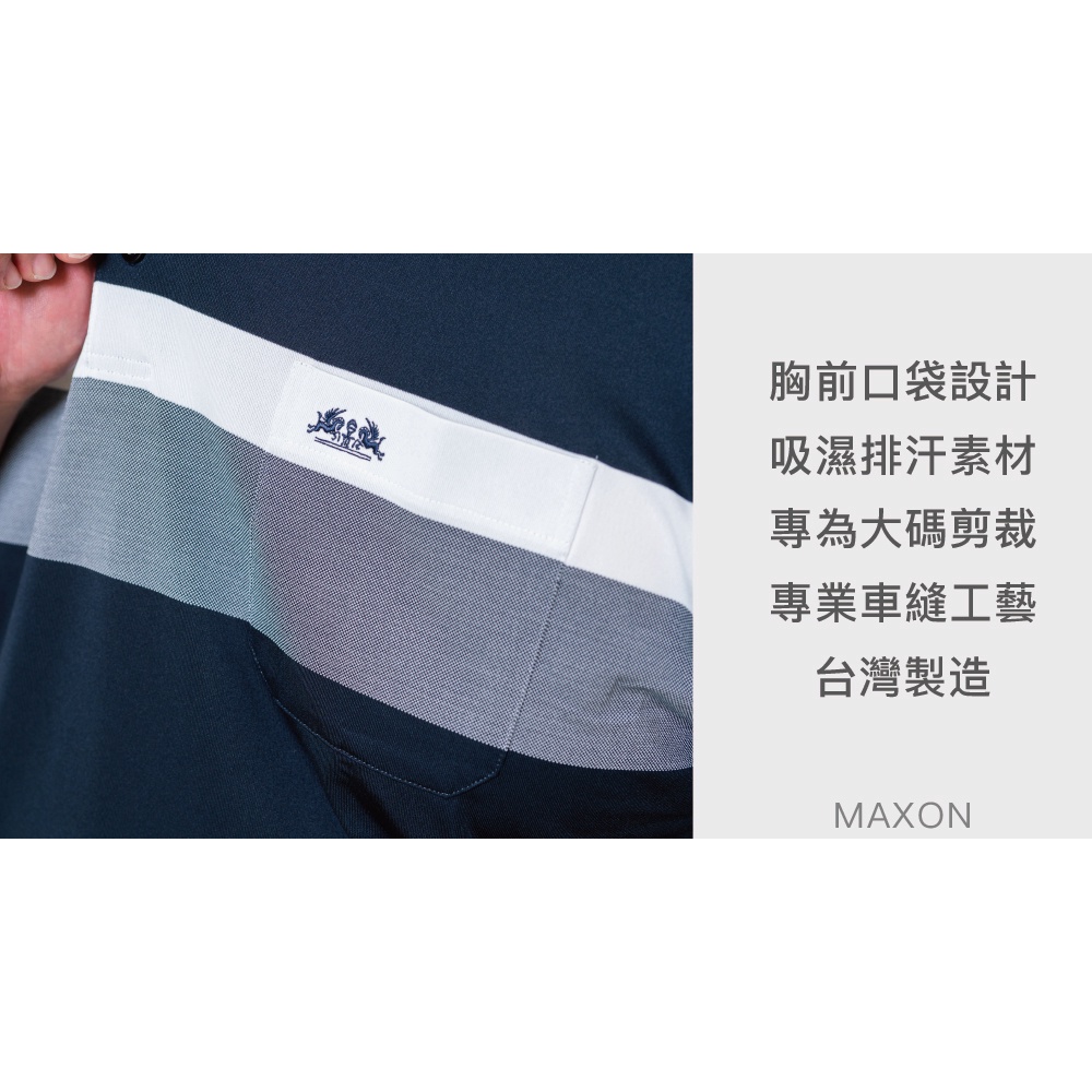 【MAXON大尺碼】台灣製深藍條紋排汗絲滑感彈性POLO衫XL~5L 加大尺碼 免運 91773-58