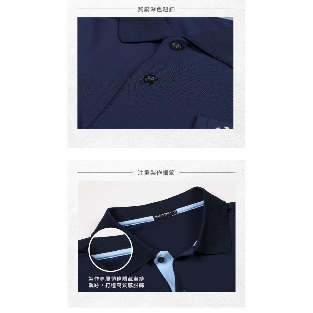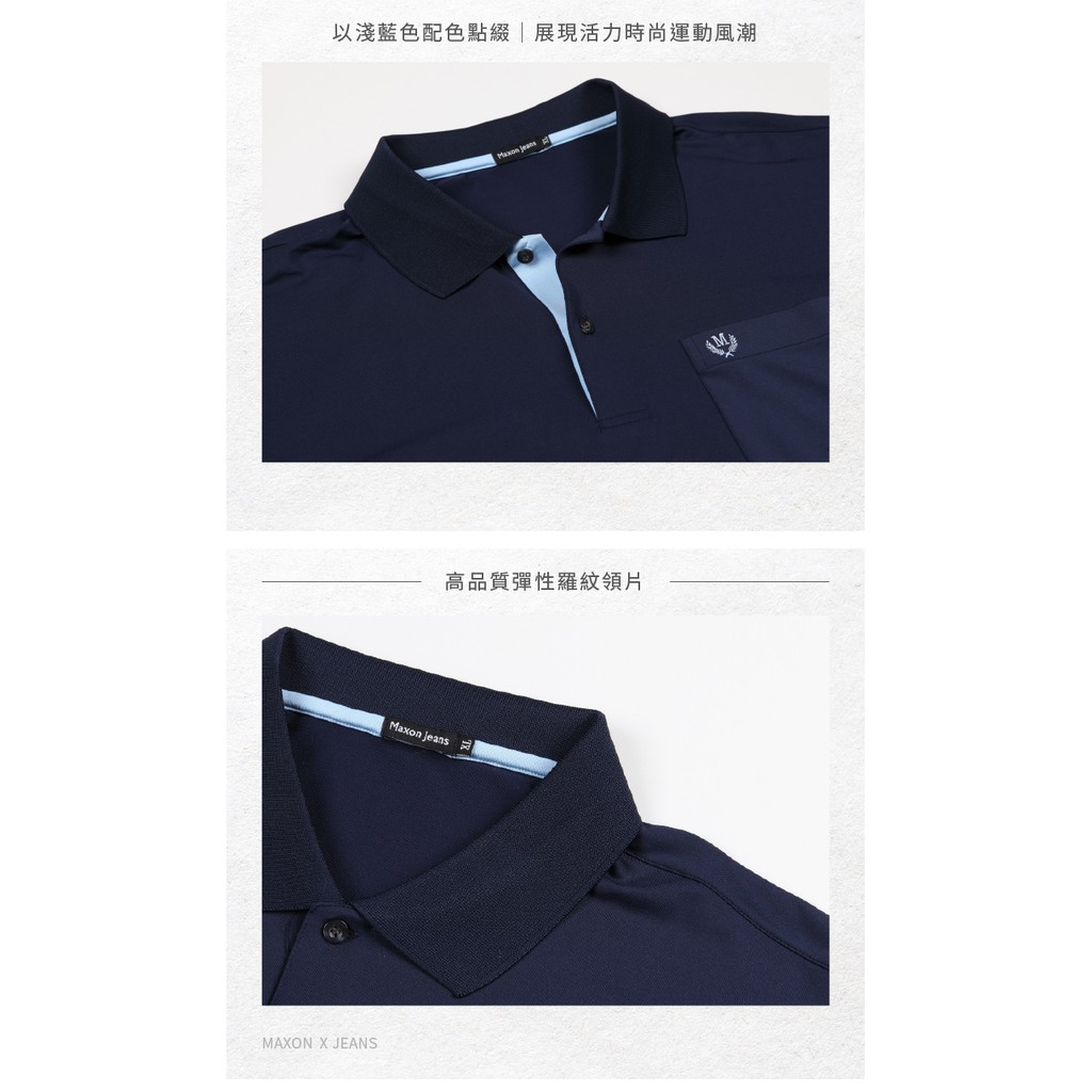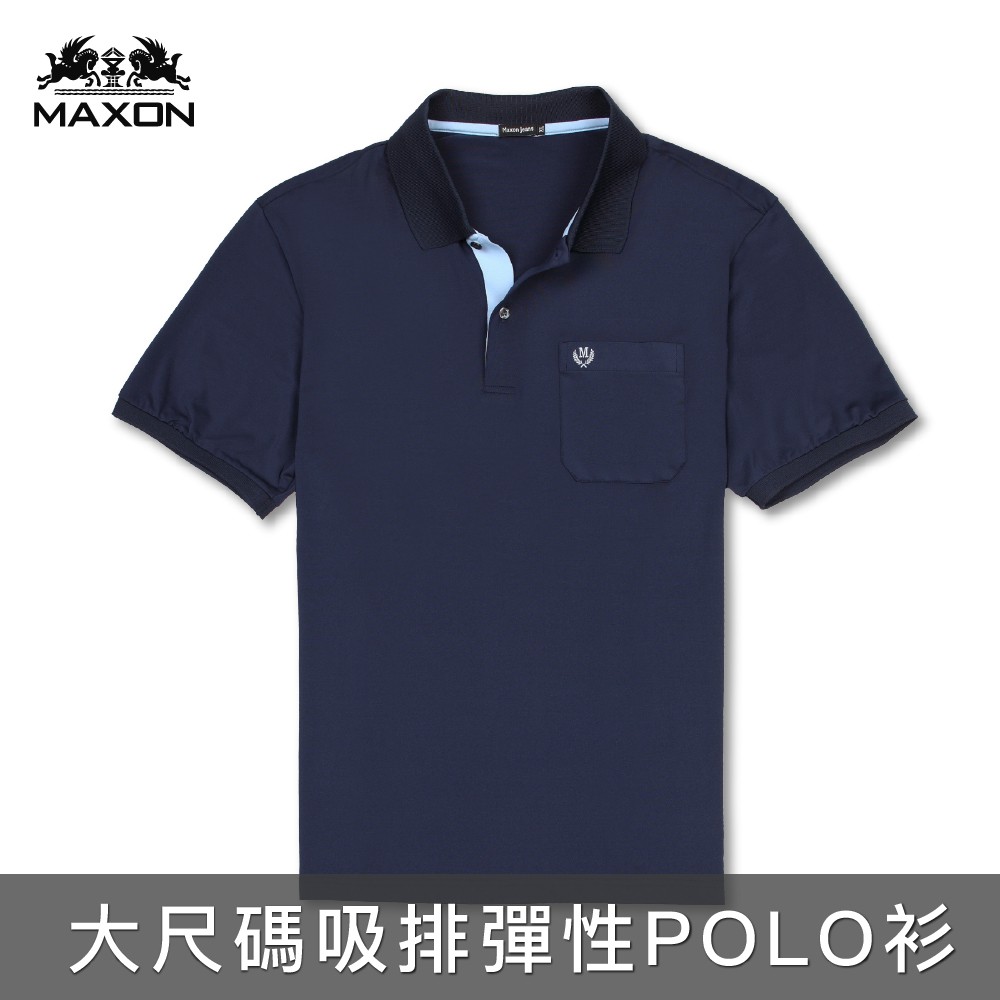 【MAXON大尺碼】深藍配色抗UV吸濕排汗彈力口袋POLO衫XL-4L 加大尺碼 超取免運 台灣製91725-58