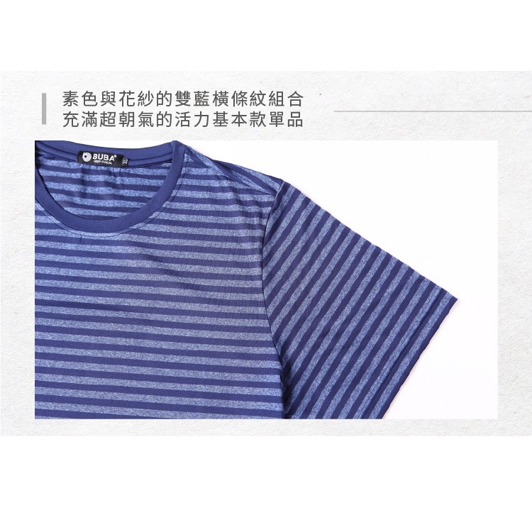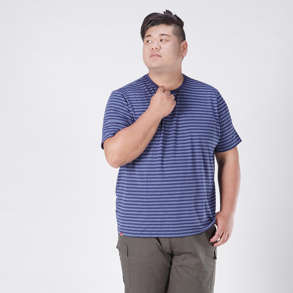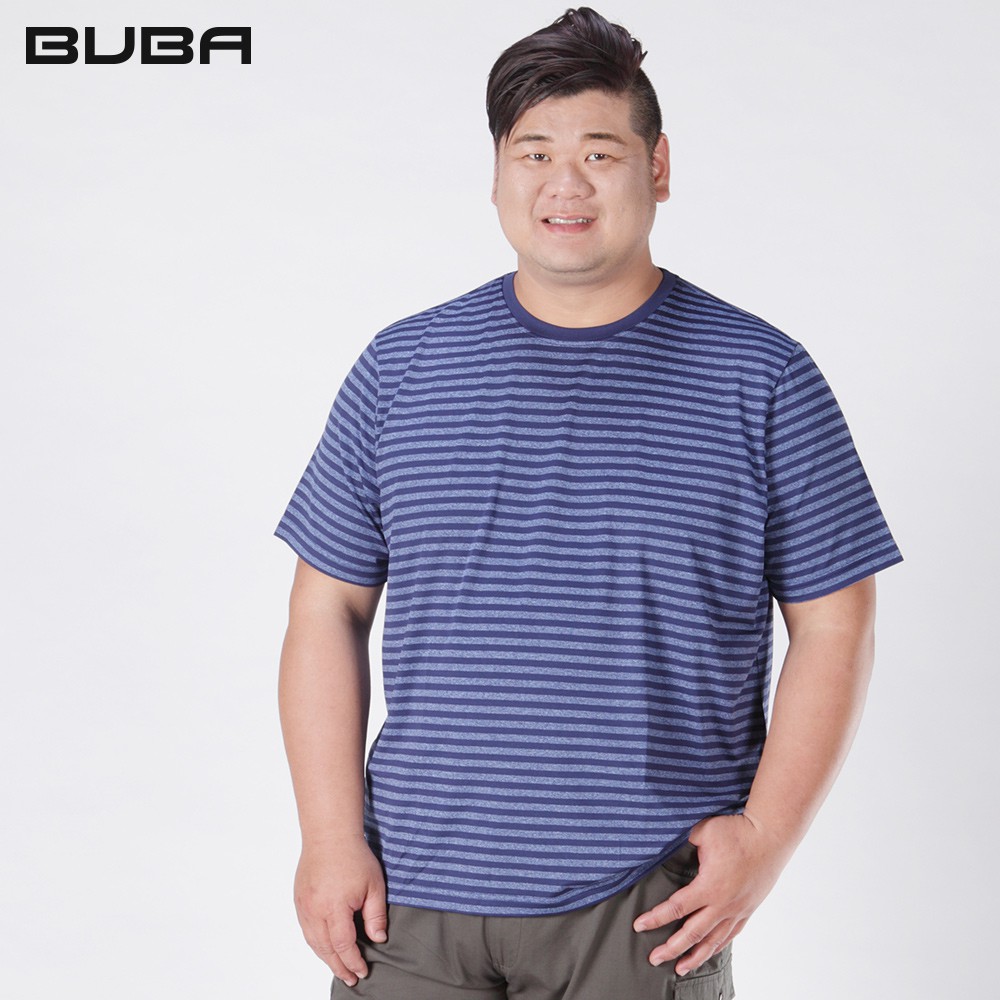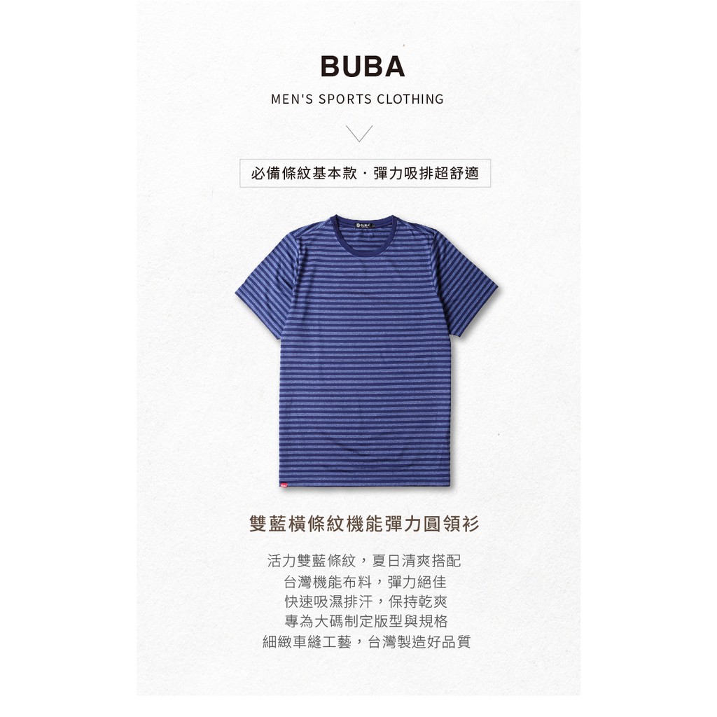 【BUBA大尺碼】台灣製超彈藍色條紋排汗彈力短袖圓領衫 加大尺碼 免運 運動T11722-56