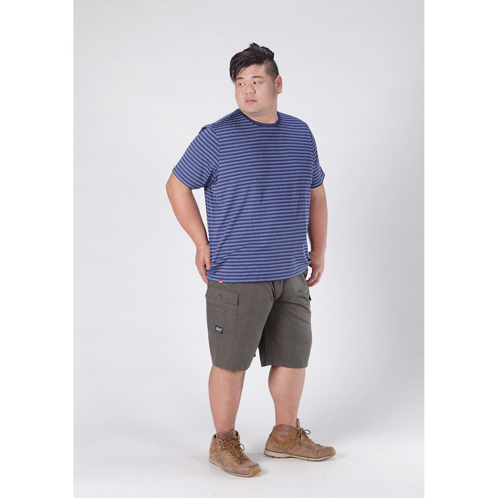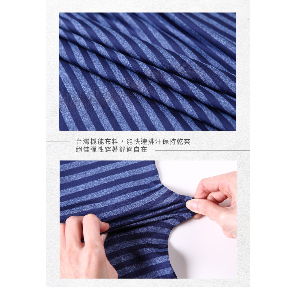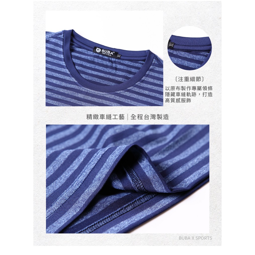 【BUBA大尺碼】台灣製超彈藍色條紋排汗彈力短袖圓領衫 加大尺碼 免運 運動T11722-56