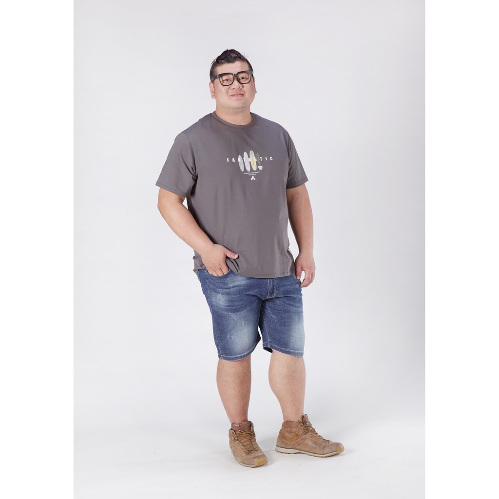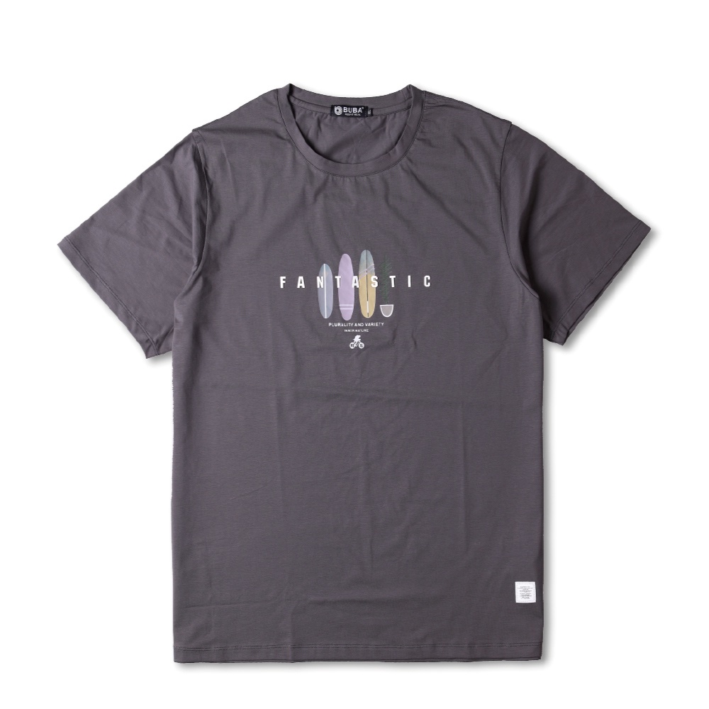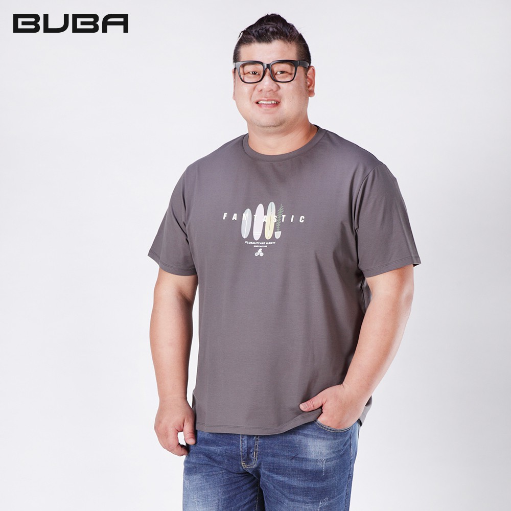 【BUBA】大尺碼灰色衝浪板彈性短袖T XL~5XL 加大尺碼 淺灰色 潮t 簡單 立體字 免運11713-85