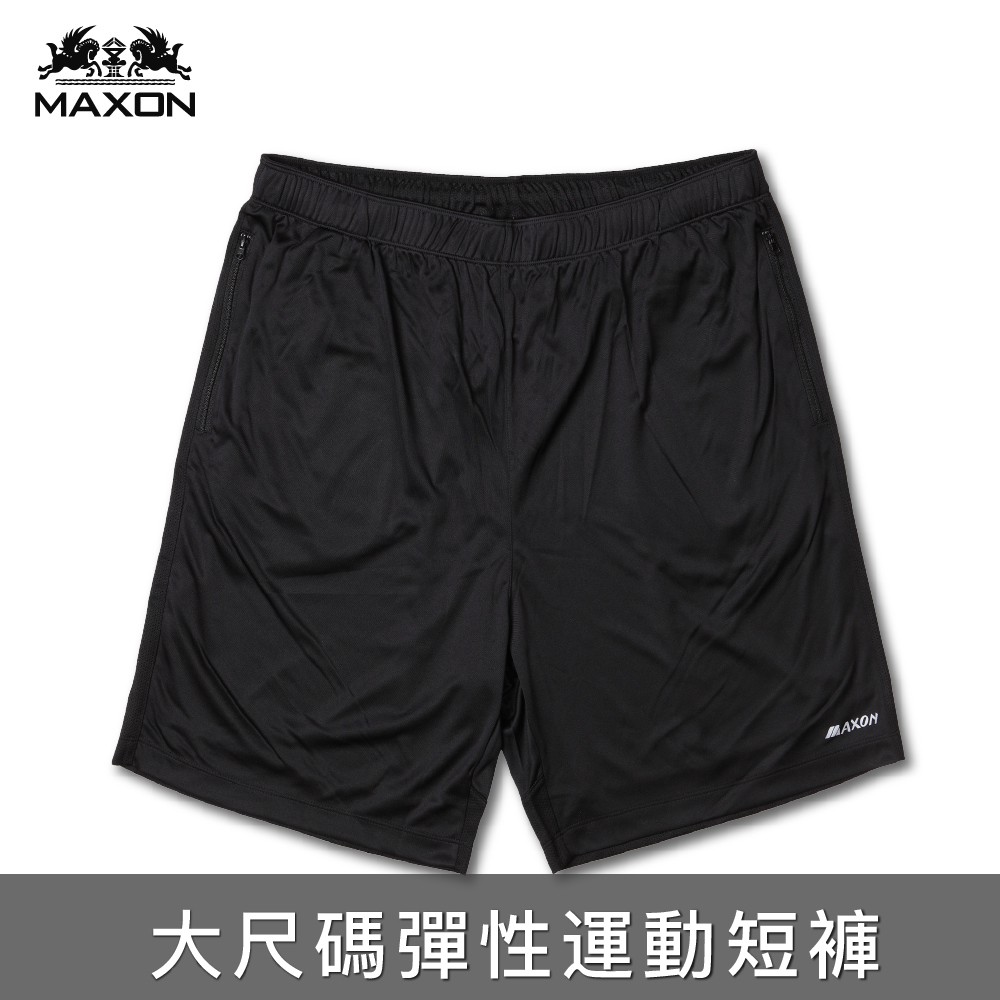 【MAXON台灣製】大尺碼黑色輕薄抽繩機能排汗彈性運動短褲2L~5L 加大尺碼 50腰 免運 拉鍊口袋