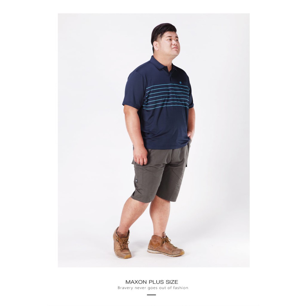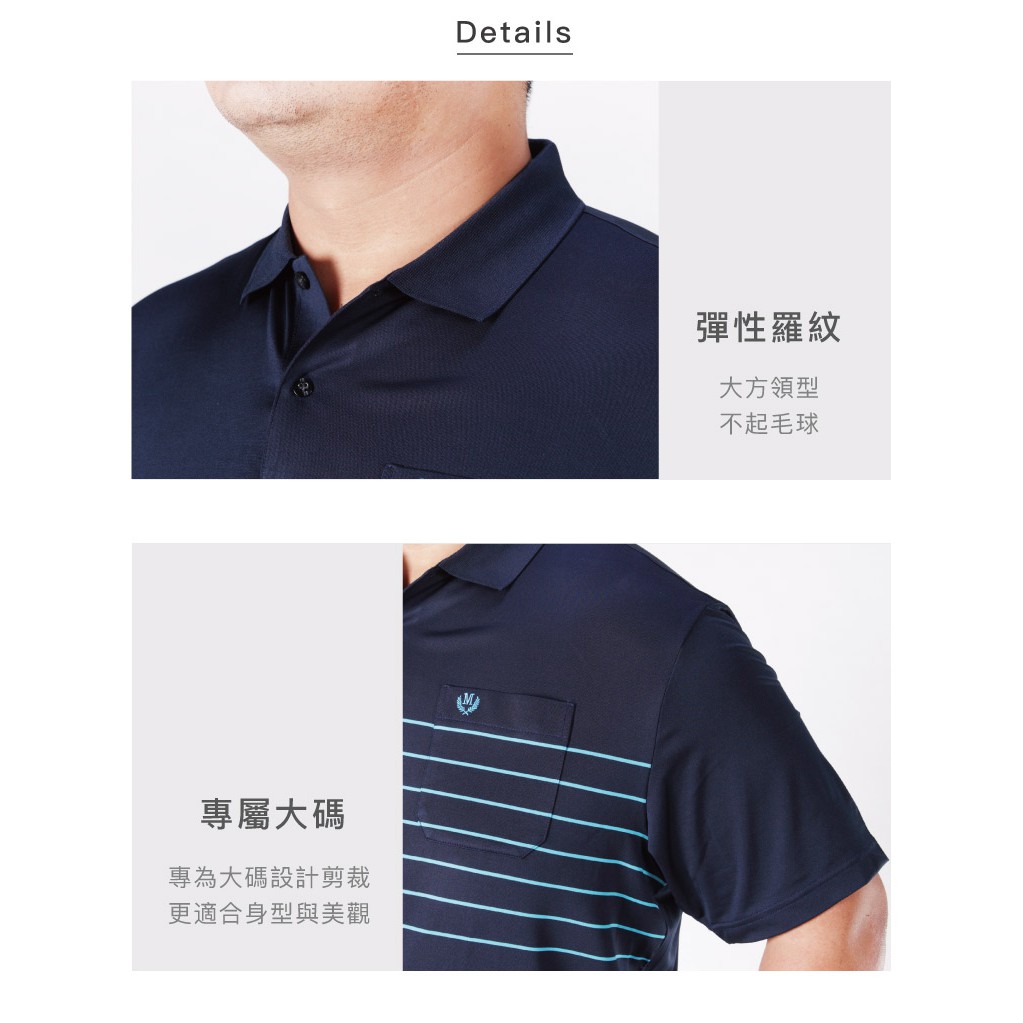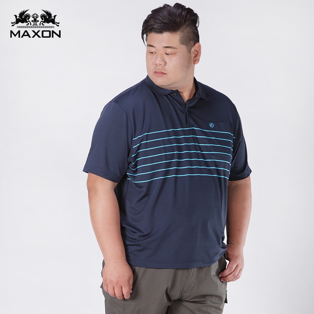 【MAXON】台灣製大尺碼深藍藍條紋彈性吸濕排汗POLO衫XL-6L 加大尺碼polo衫 免運91751-58