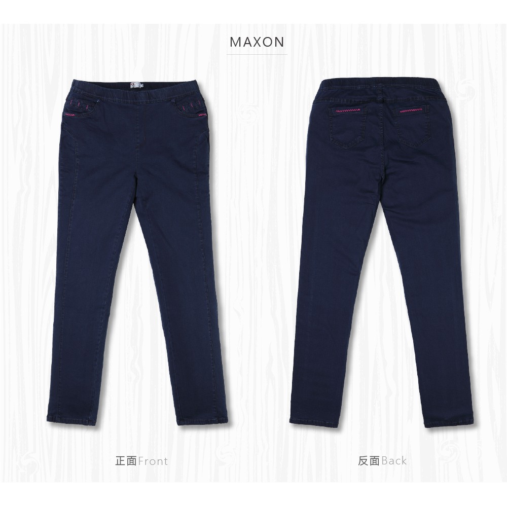 【MAXON】台灣製女裝大尺碼深藍波浪美腿彈力窄管褲34~44腰 內搭褲 超取免運67621-58
