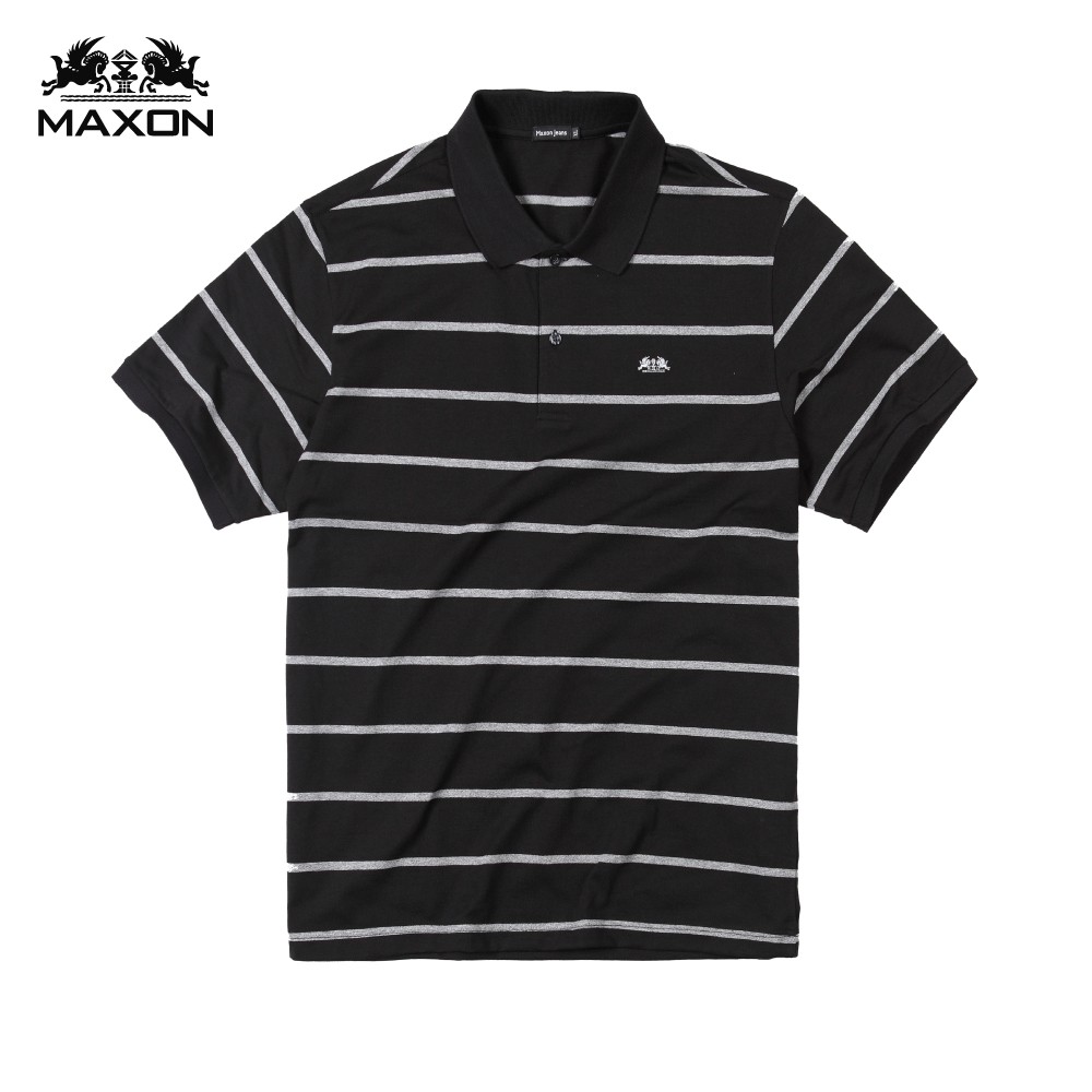 【MAXON大尺碼】台灣製黑灰橫條紋吸排網眼POLO衫XL~5L 上班 婚禮 免運91730-88