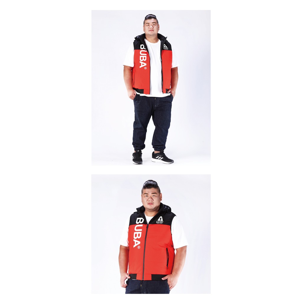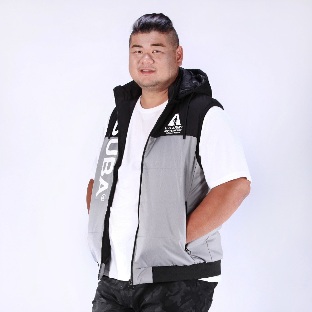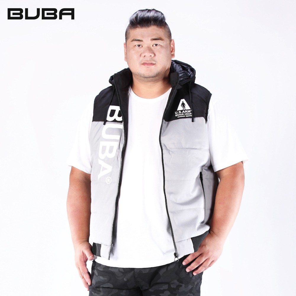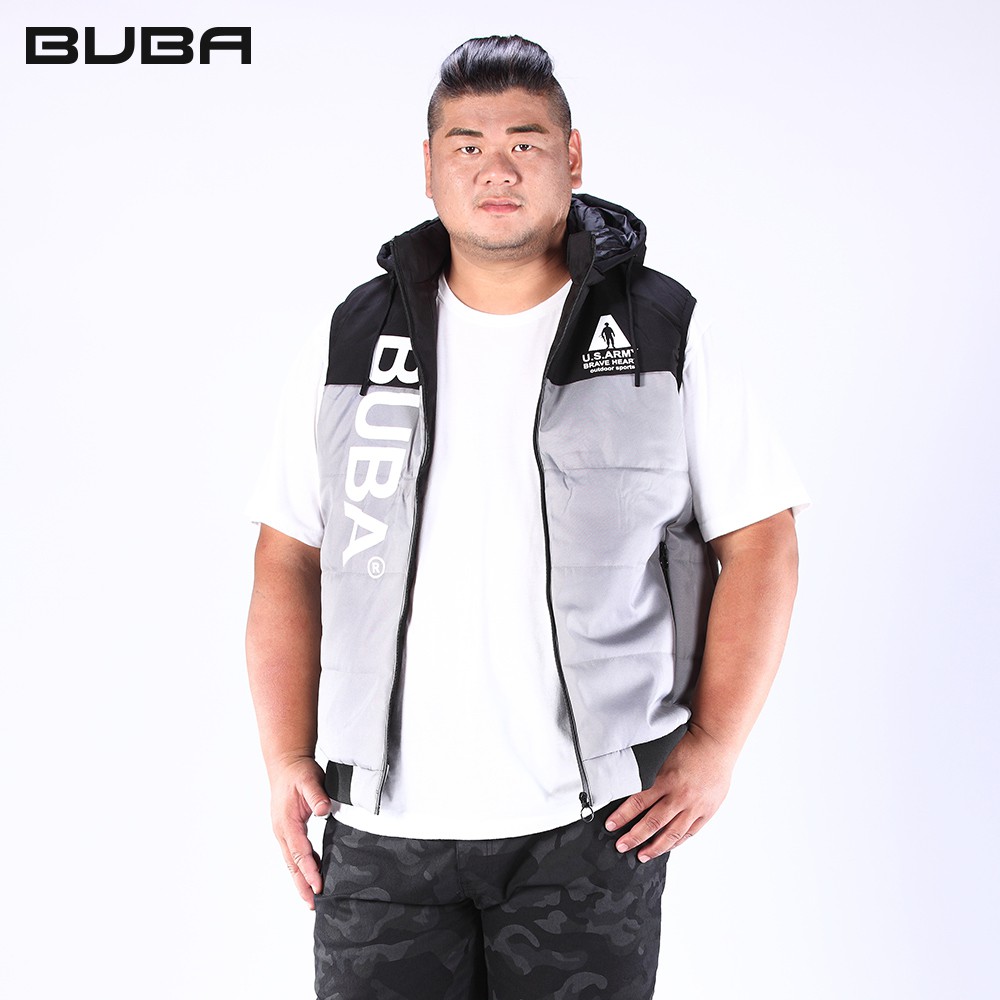 【BUBA大尺碼】黑灰剪接活動帽輕暖鋪棉背心2L~4L 街頭潮流 加大尺碼 免運13002-81