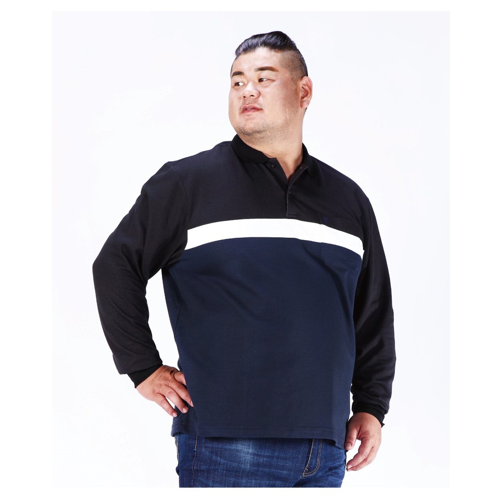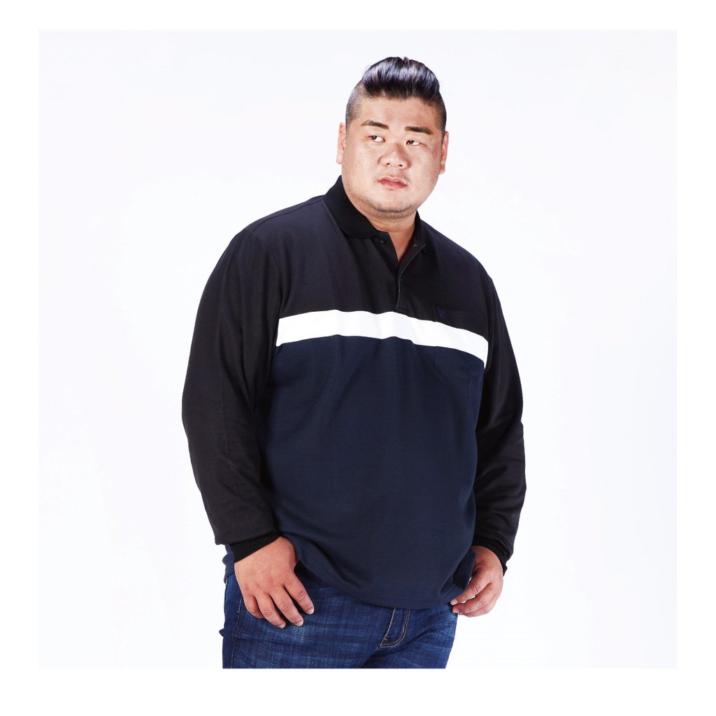 【MAXON】台灣製/大尺碼黑藍白撞色棉柔長袖POLO衫XL-4L 加大尺碼 免運 特價83798-58