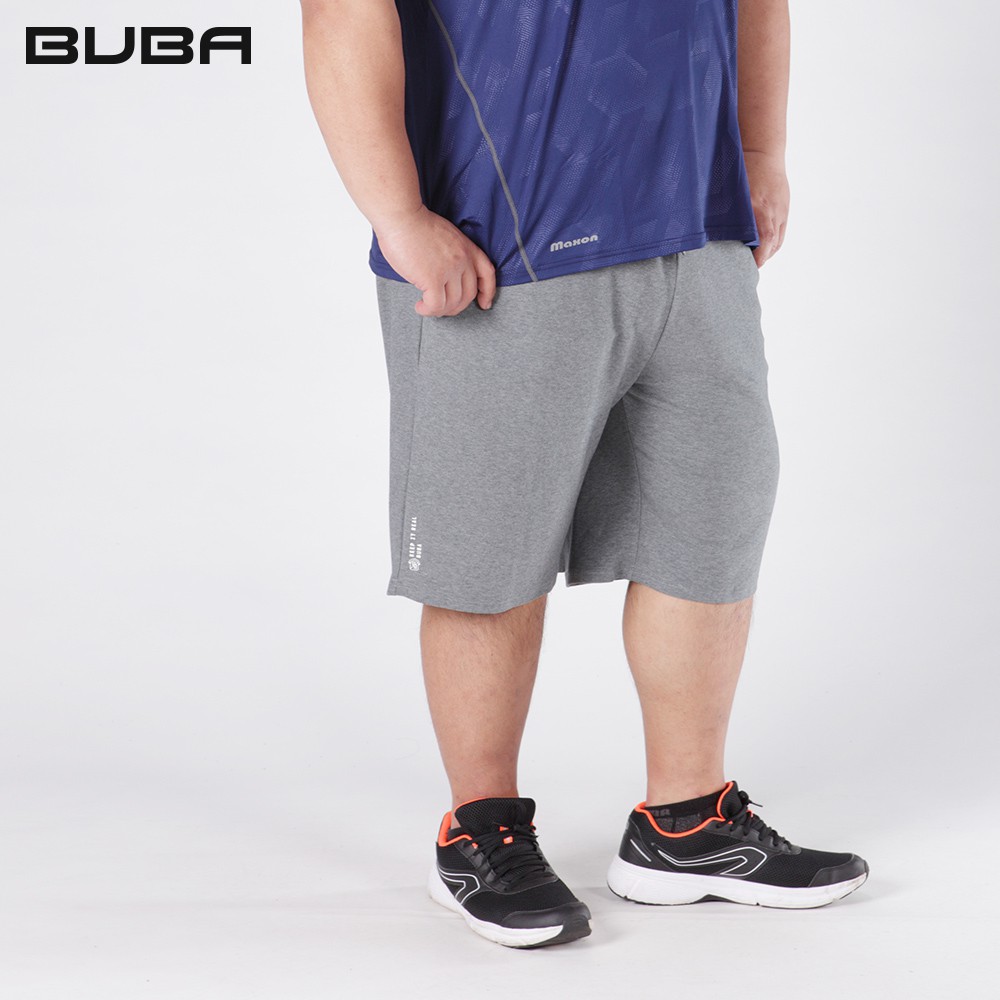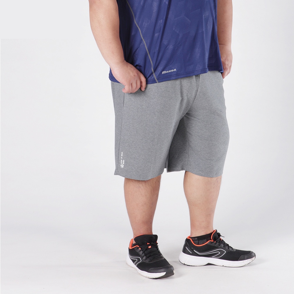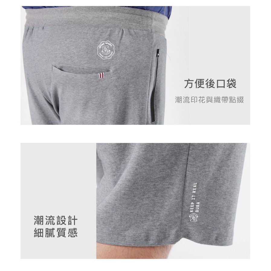 【BUBA大尺碼】淺灰鬆緊腰抽繩棉柔彈性短褲2L~5L 加大尺碼運動褲 免運