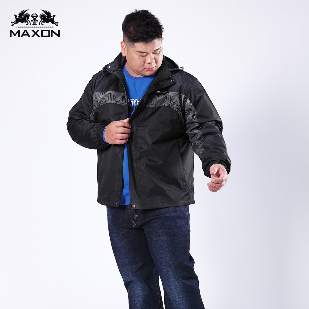 【MAXON大尺碼】黑色幾何圖剪接活動帽防風薄外套2L~5L加大尺碼 騎車 超取免運89295-88