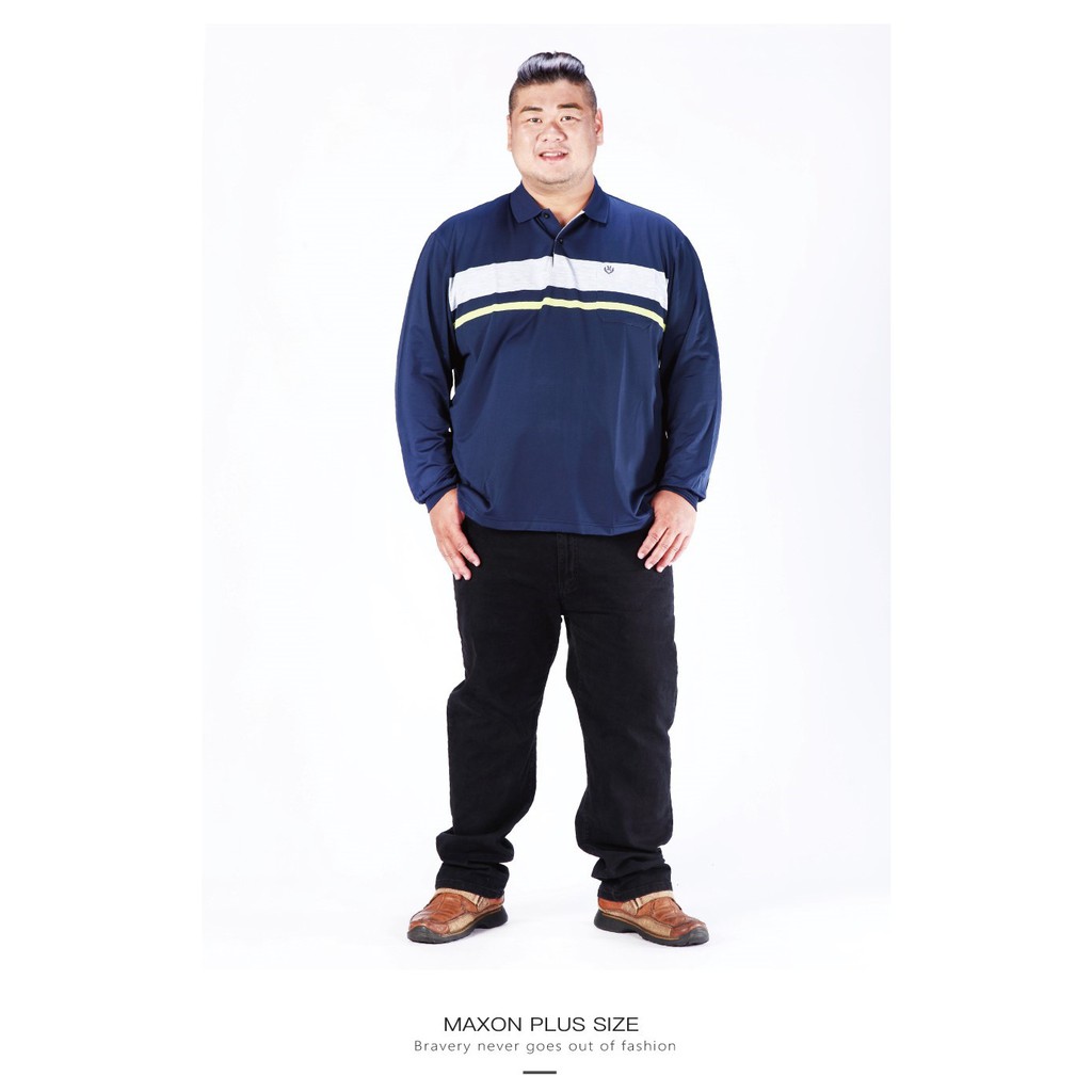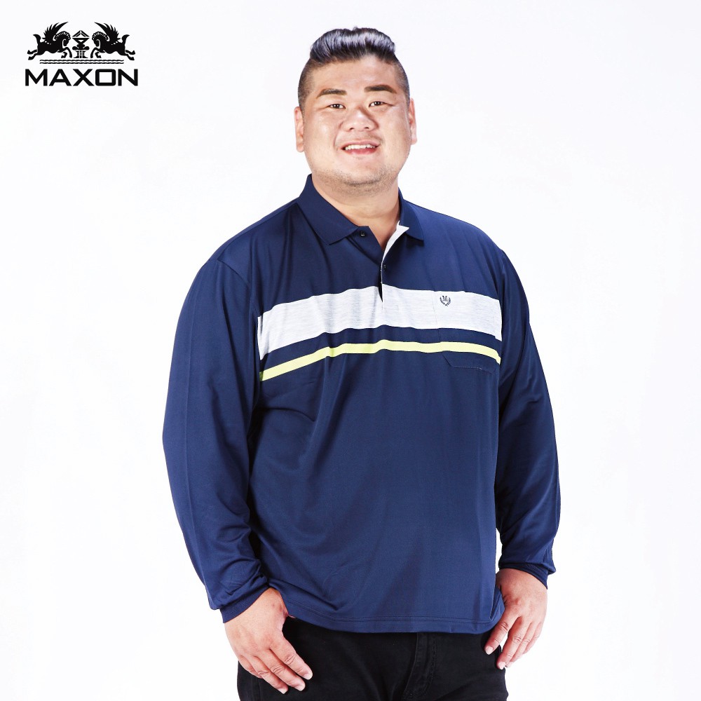 【MAXON】台灣製/大尺碼藍灰條紋彈性機能薄POLO衫XL-5L 加大尺碼 特價 免運83800-45