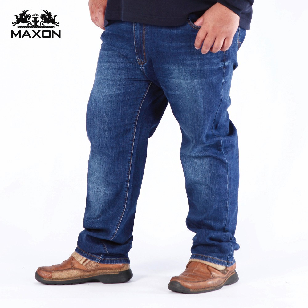 【MAXON】大尺碼中藍輕刷色質感修身版彈性直筒褲38~54腰 加大尺碼牛仔褲 丹寧褲 免運87922-58