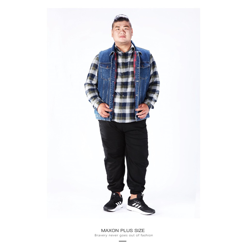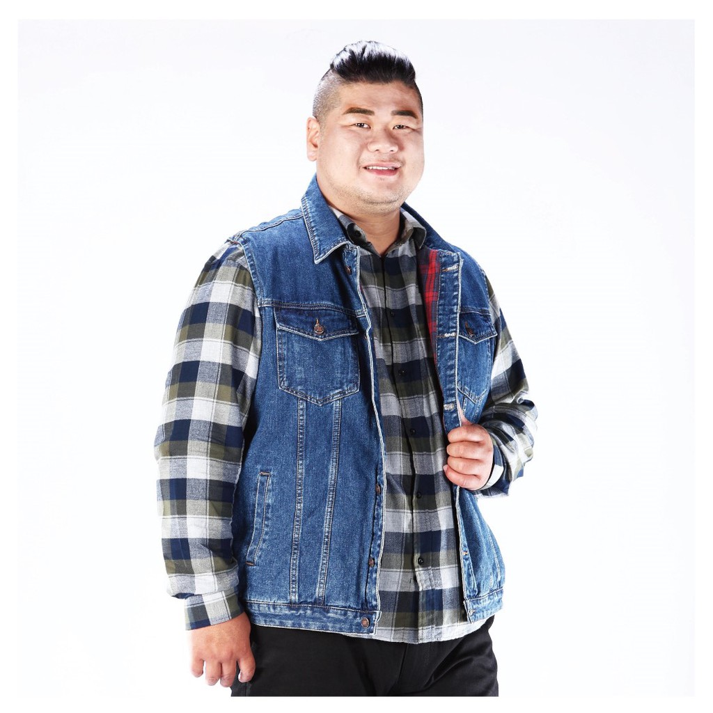 【MAXON大尺碼】中藍紅格裡純棉丹寧牛仔背心2L~5L 加大尺碼 美式復古oversize 免運82925-56