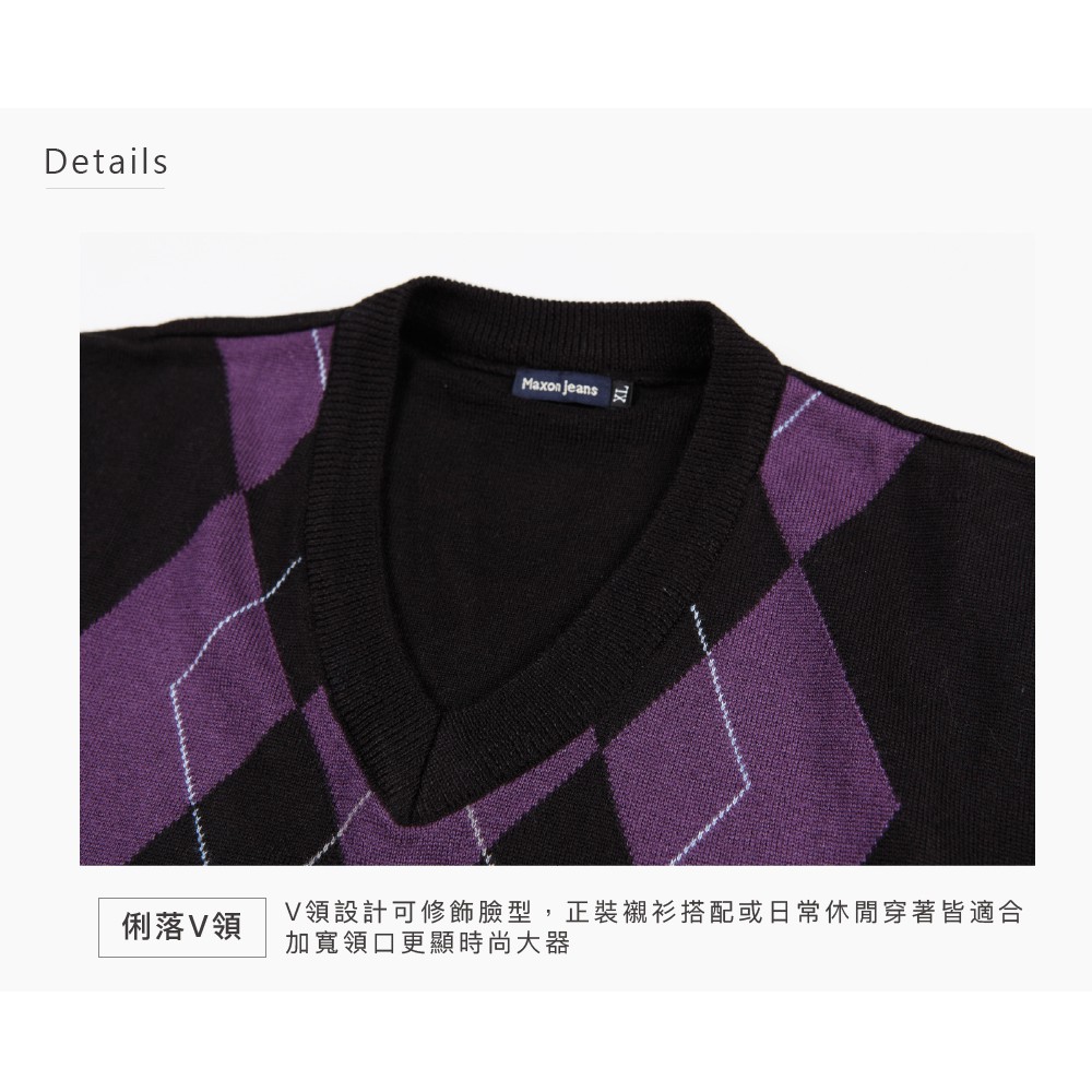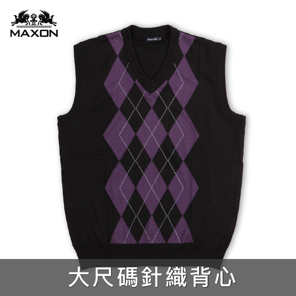 【MAXON大尺碼】台灣製黑色羊毛紫菱格針織V領背心XL~4XL 復古風 面試 工作 搭配襯衫 特價 免運