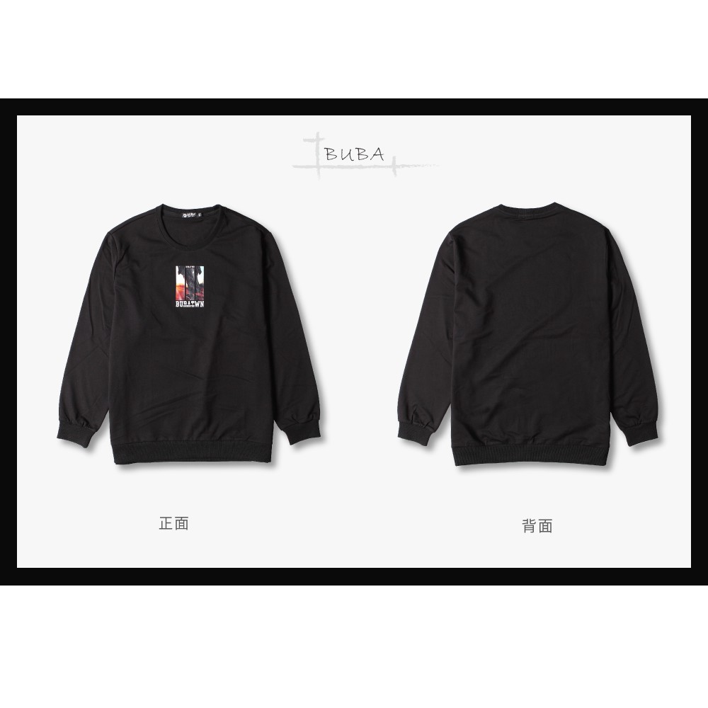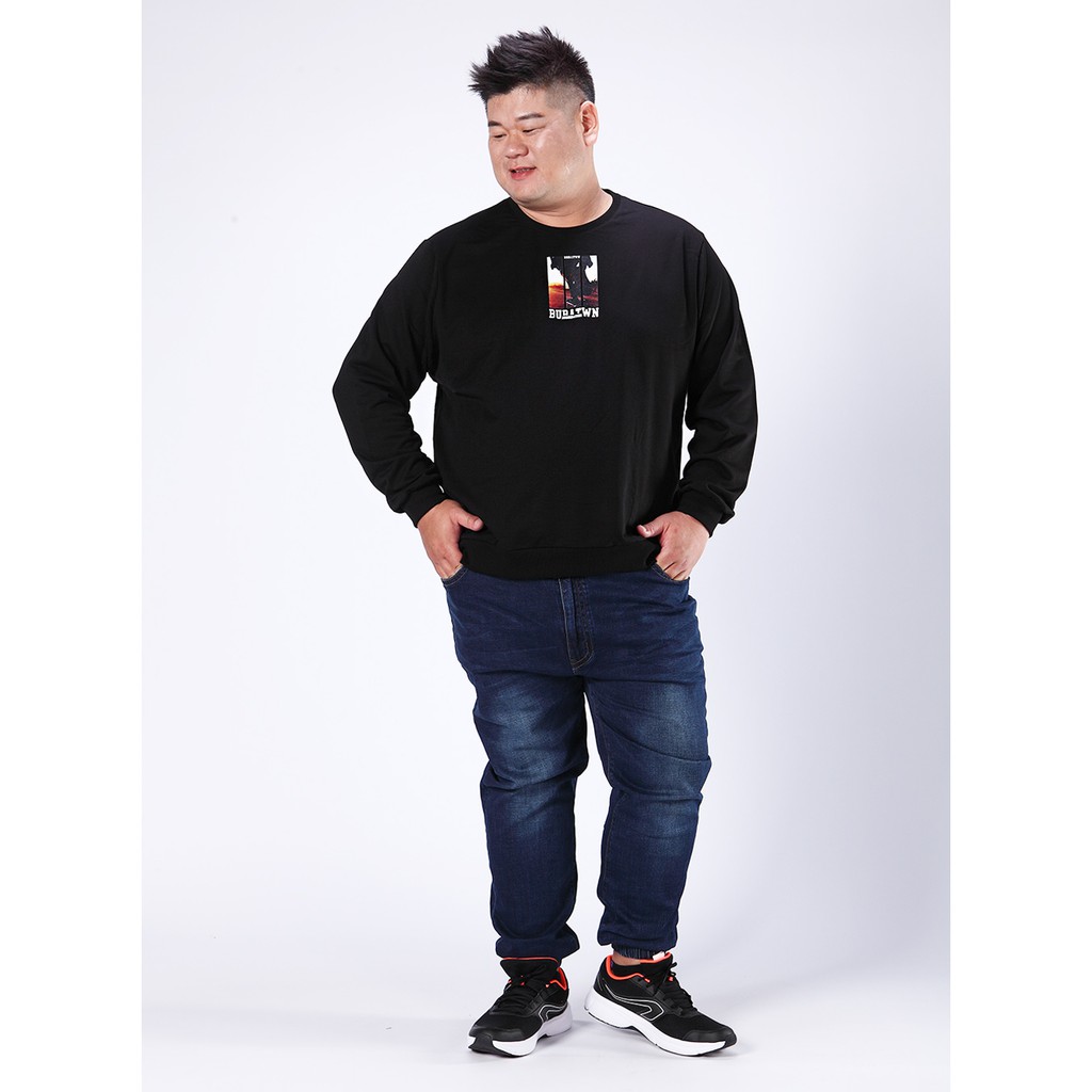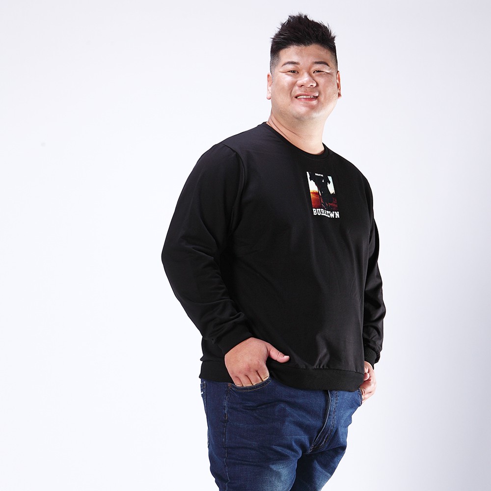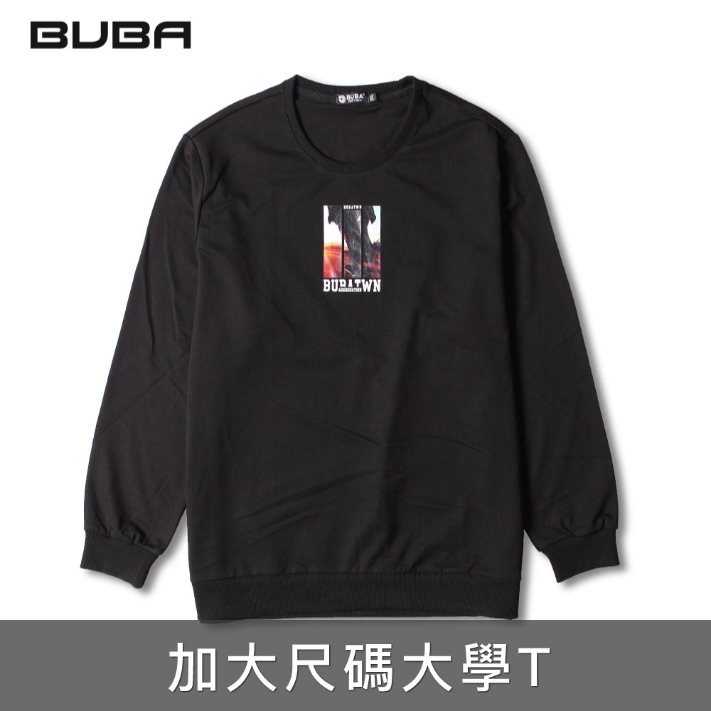 【BUBA大尺碼】黑色街頭滑板彈性大學T 2XL~5XL 加大碼 免運 特價13705-88
