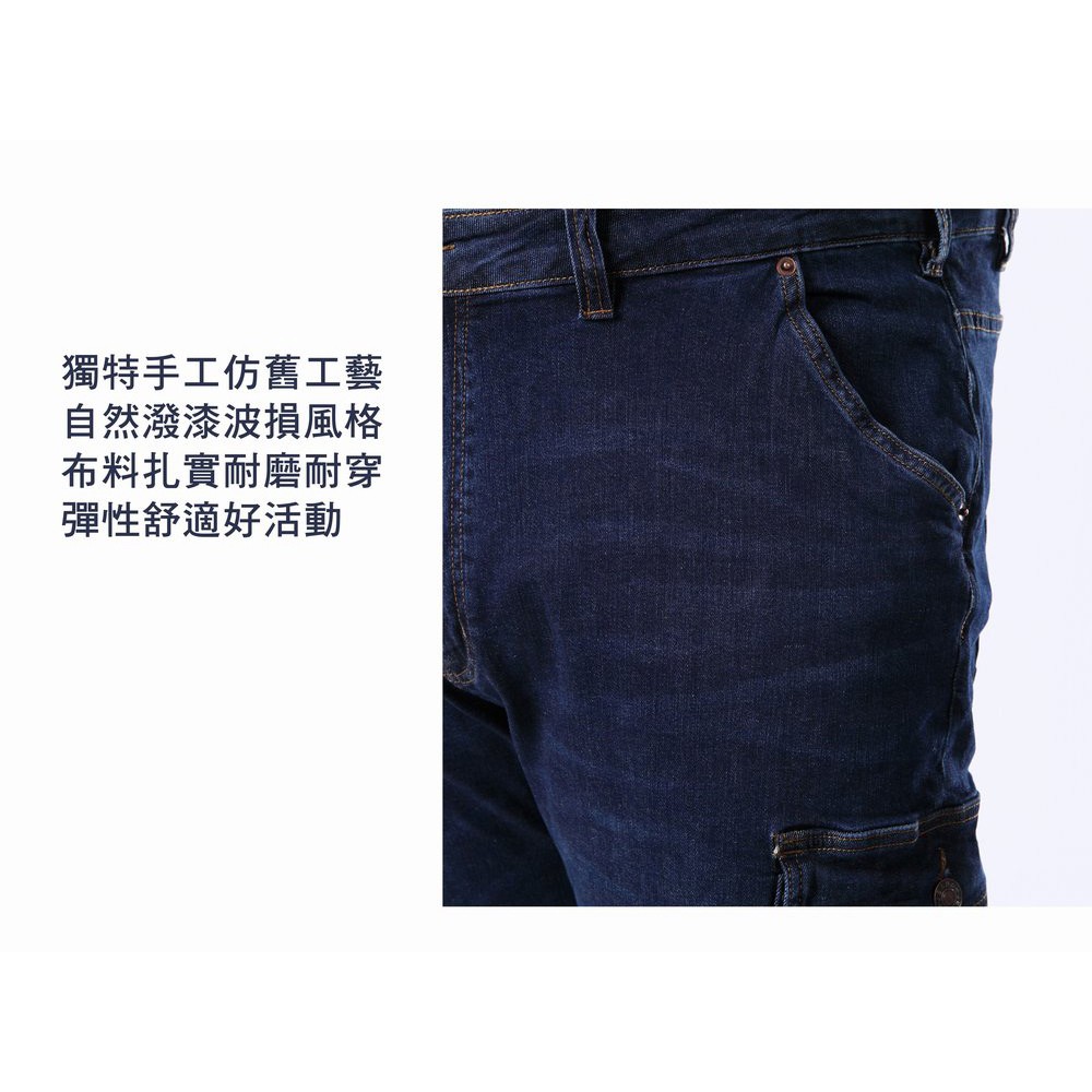 【BUBA大尺碼】深藍多口袋輕刷彈性牛仔工作褲38~48腰 加大尺碼 口袋褲 工裝 超取免運17740-58