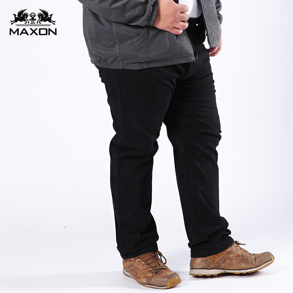【MAXON】大尺碼加大尺碼黑色修身版彈性牛仔直筒褲38~54腰 超取免運 黑牛褲87913-88
