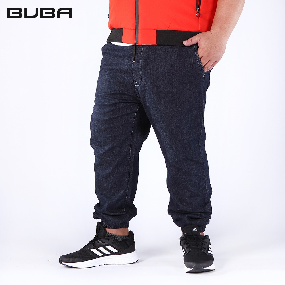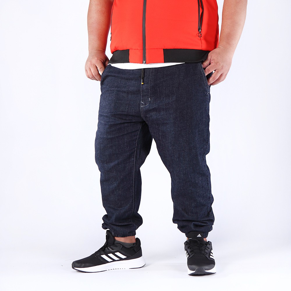 【BUBA】大尺碼深藍牛仔原色水洗修身彈性束口褲38-48腰 加大尺碼縮口褲 免運17741-58
