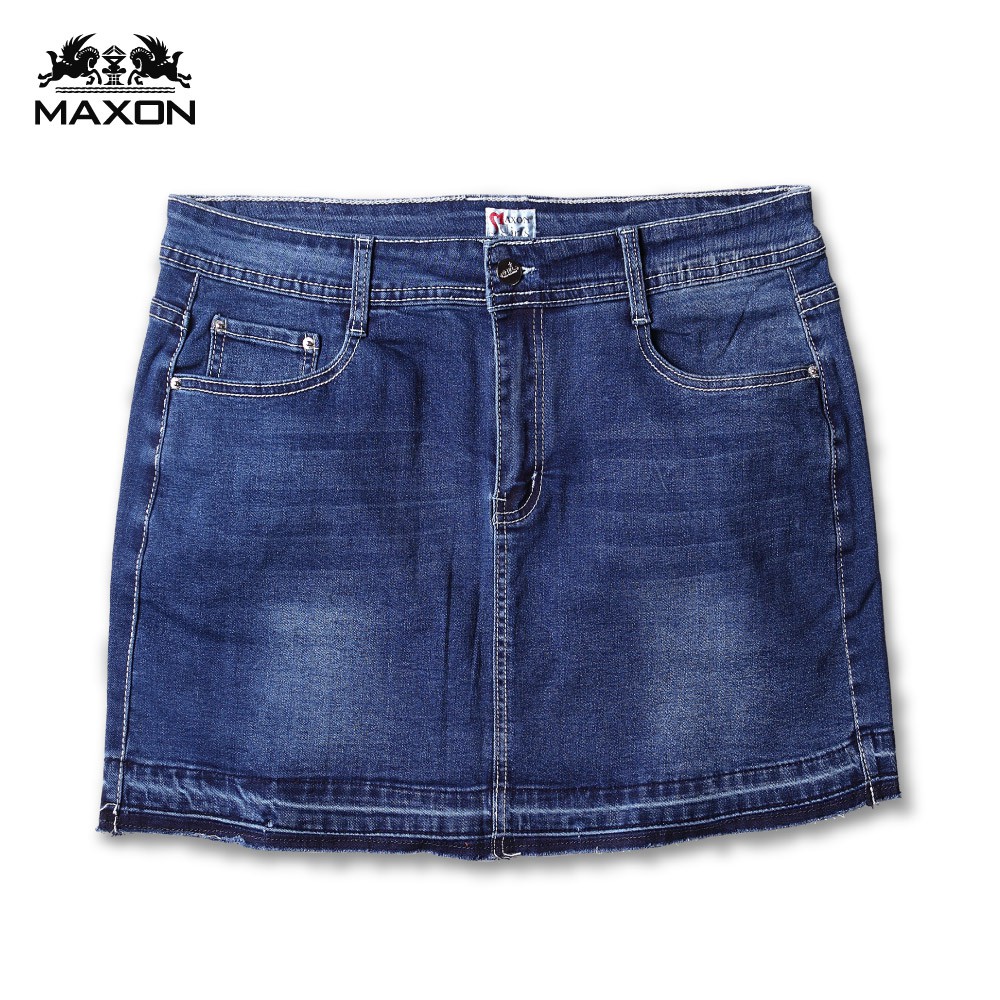 【MAXON大尺碼】棉花糖女款中藍下襬不修邊彈力牛仔短裙34~42腰 丹寧短裙 加大尺碼 免運61806-56