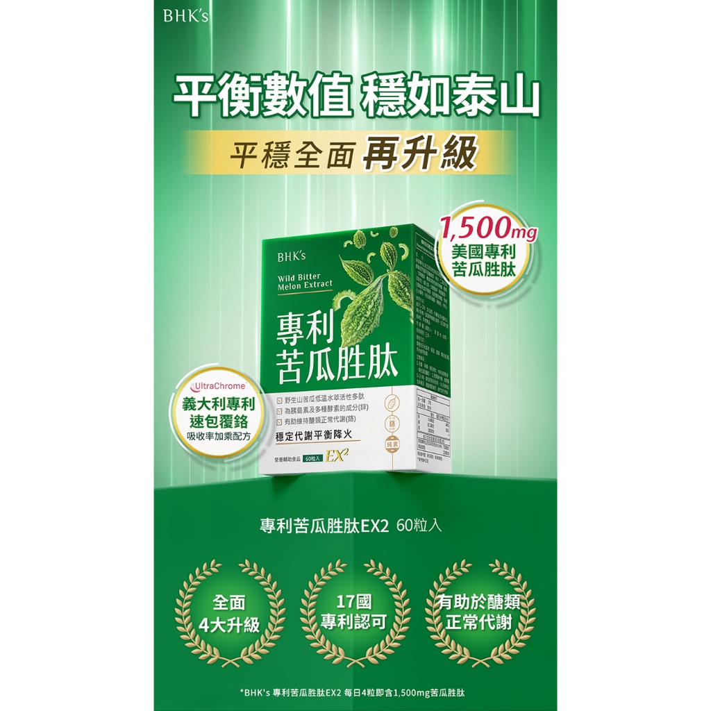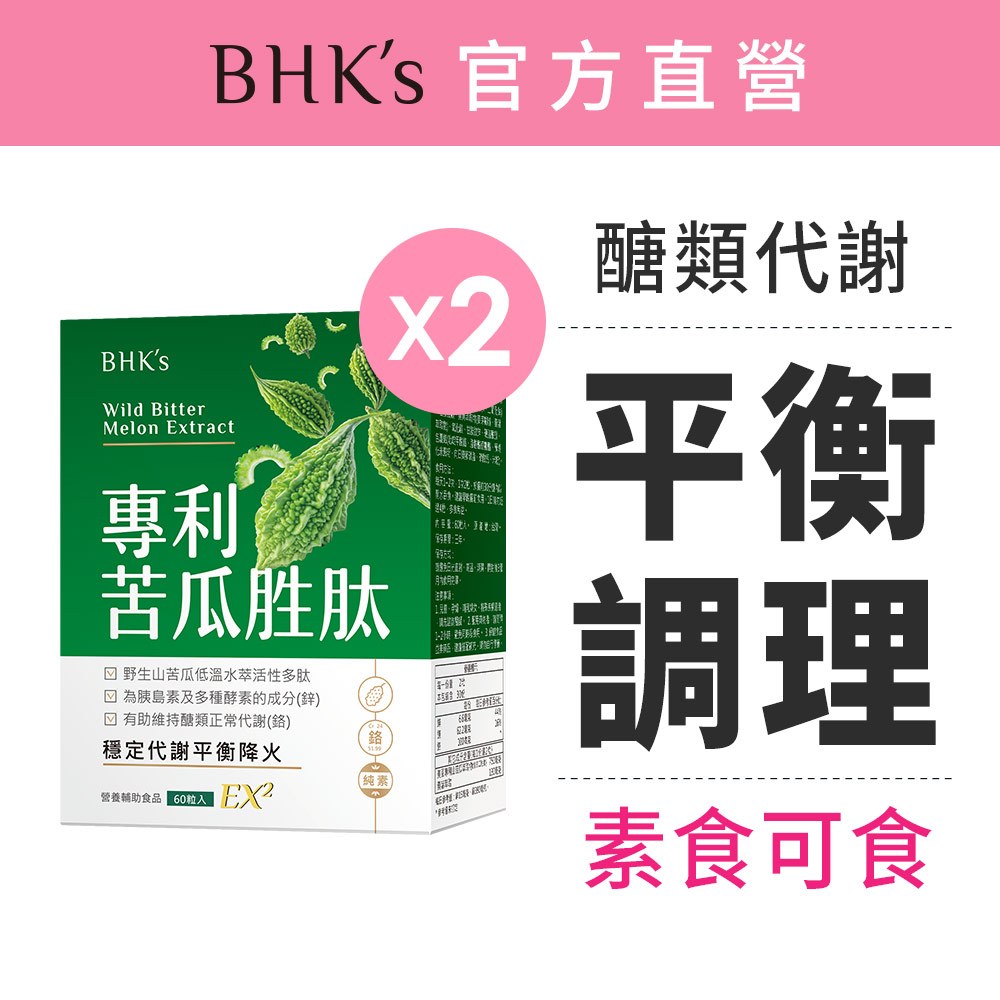 BHK's 專利苦瓜胜肽EX2 素食膠囊 (60粒/盒)2盒組 維持醣類正常代謝/添加鉻+鎂/素食保健 官方旗艦店