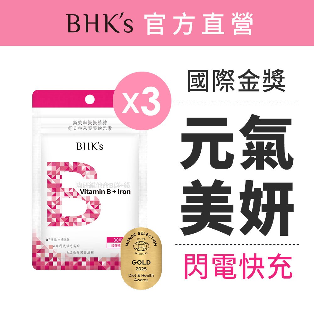 BHK's 璨研維他命B群+鐵錠 (30粒/袋)3袋組 女性B群/速崩錠/提神 官方旗艦店