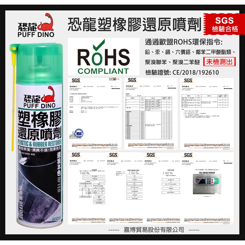 【PUFF DINO 恐龍】恐龍塑橡膠還原噴劑600ml 《塑膠還原劑/橡膠還原劑/膠條保護劑》