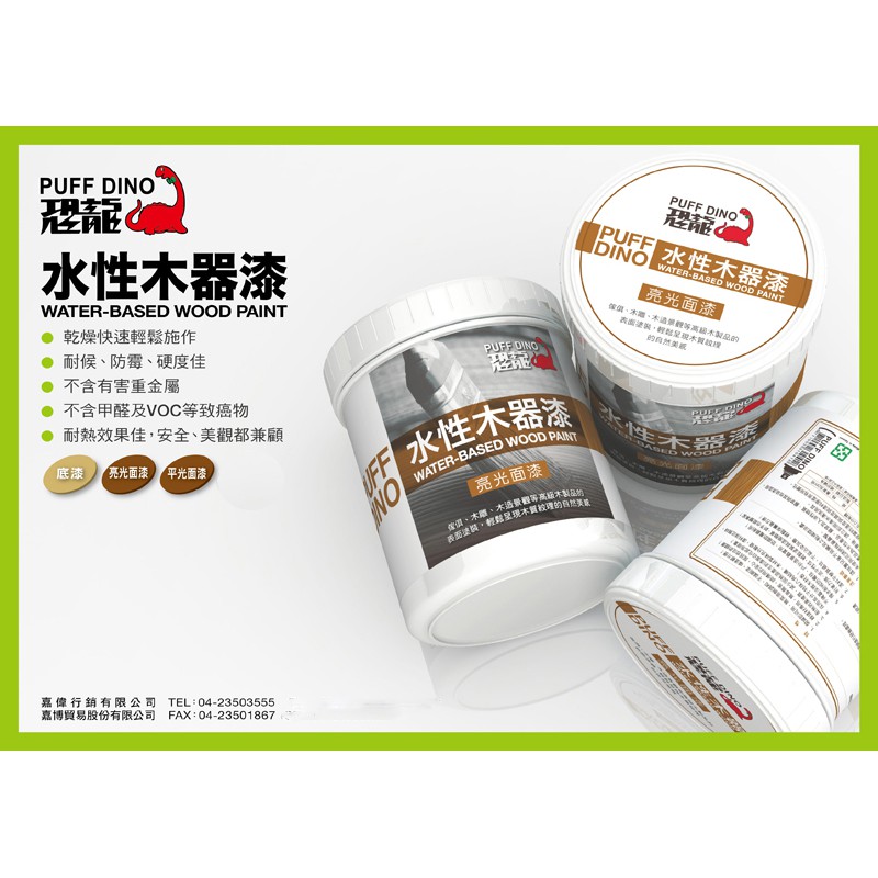 【PUFF DINO 恐龍】恐龍水性木器漆組(底漆+亮光面漆)(加贈3M研磨海綿)《護木漆/木器塗料》