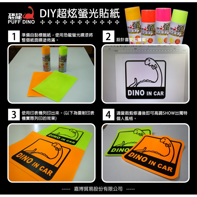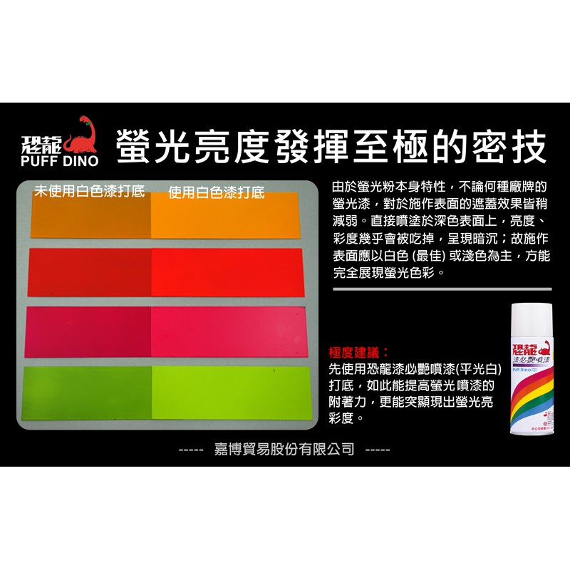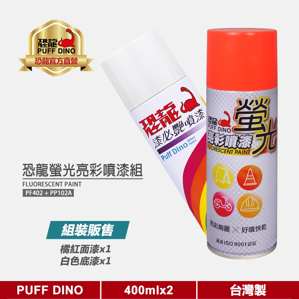 【PUFF DINO 恐龍】恐龍螢光亮彩噴漆組(螢光橘紅+白色底漆)《螢光漆/螢光噴漆/螢光塗料/恐龍螢光噴漆》