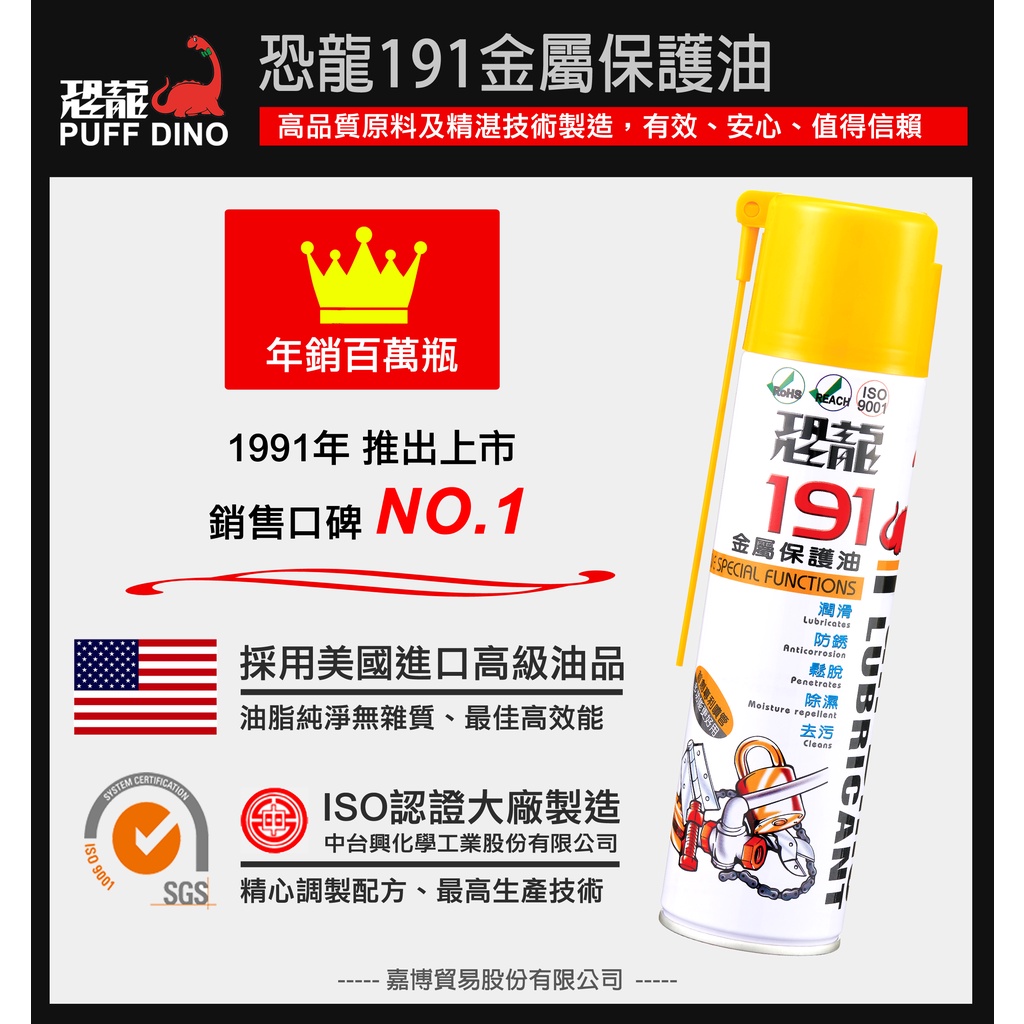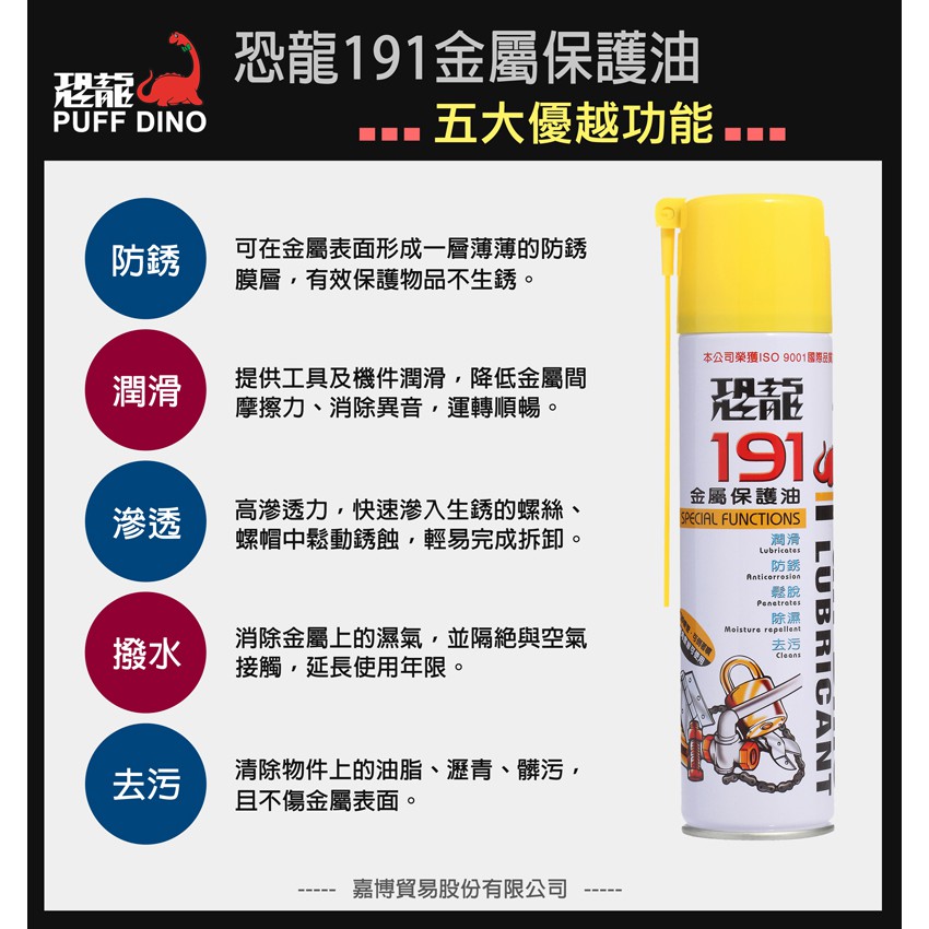 【PUFF DINO 恐龍】恐龍191防銹潤滑油220ml《金屬保護油/防銹油/防鏽油/防銹劑/WD-40》