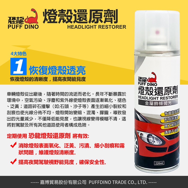 【PUFF DINO 恐龍】恐龍燈殼還原劑220ml《燈殼亮光復原劑/燈殼復活劑/燈殼復活還原劑/燈殼霧化還原劑》