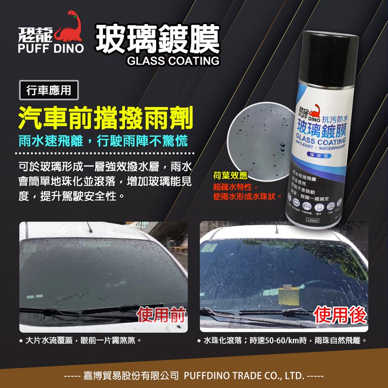 【PUFF DINO 恐龍】恐龍玻璃鍍膜220ml《鍍膜劑/鍍膜液/撥水劑/潑水劑/防水鍍膜/撥雨劑/防潑水》