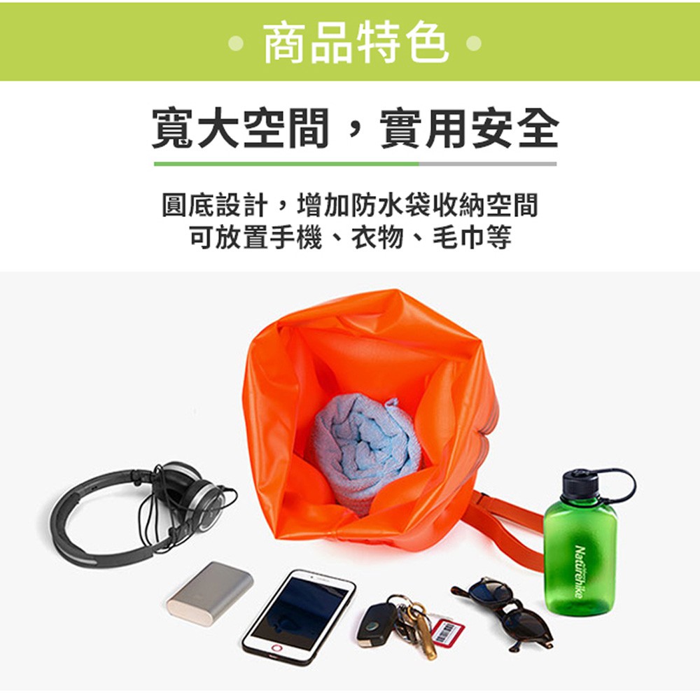 Naturehike 戶外超輕量單氣囊充氣游泳防水袋 裝備袋 漂流袋8.5L 附腰帶(橘)