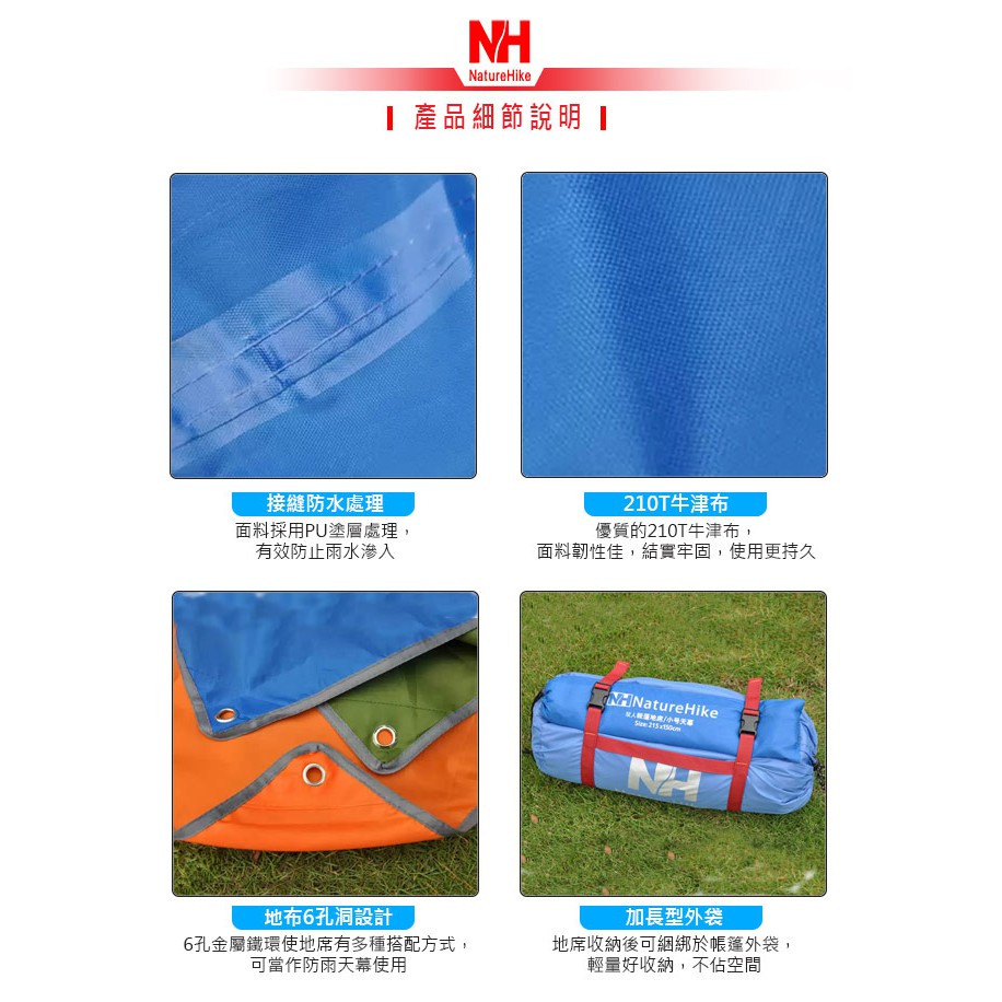 【NH】戶外6孔帳篷地席 天幕帳布 S號(雙人)