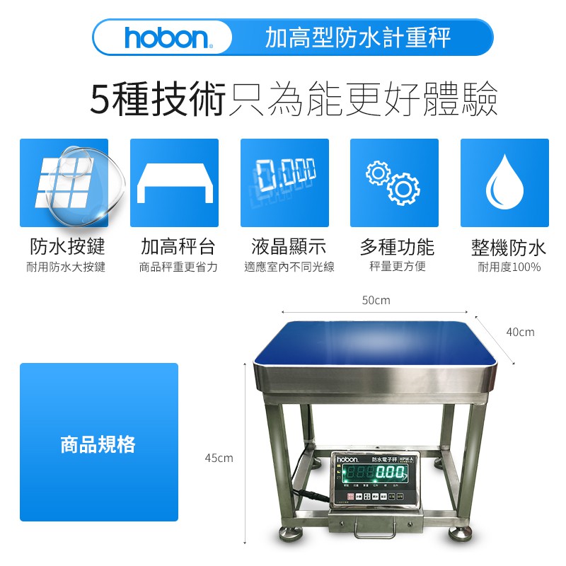 hobon 電子秤 HPW-A 防水304不鏽鋼高腳台秤