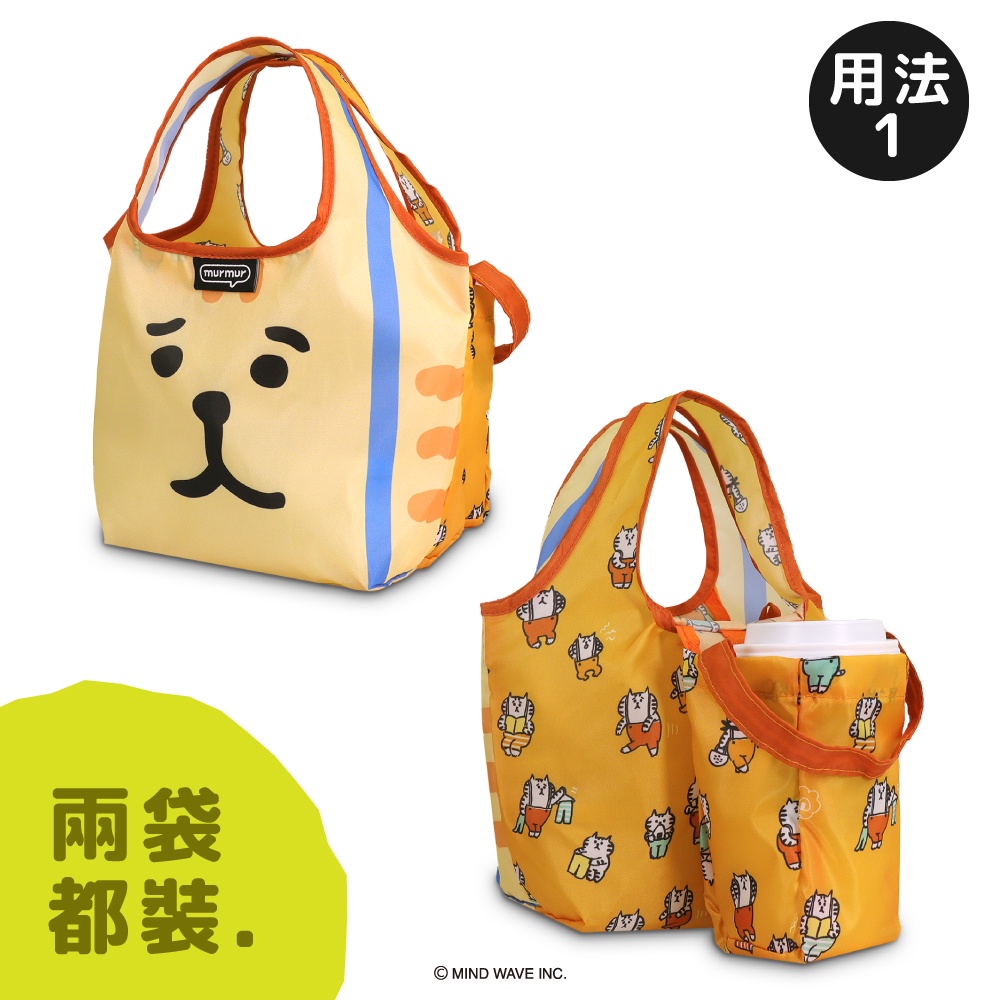 【murmur官方】餐餐袋|懶洋洋喵之助/大頭 (此款附飲料固定杯套)| 小資女必備、媽咪必敗、收納包、環保袋