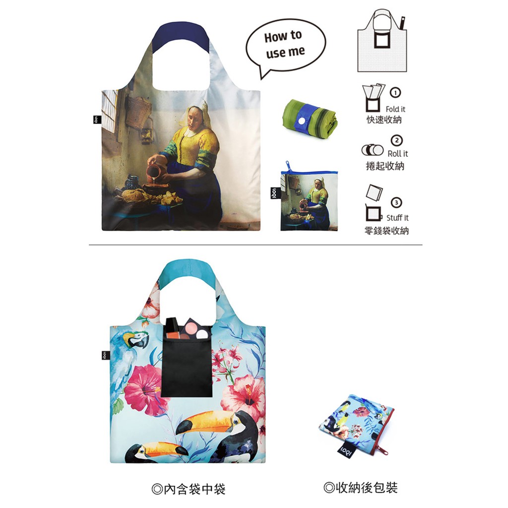LOQI 春捲包/正版博物館名畫 牛奶女僕→ 耐重20公斤.防潑水面料.三種收納.購物袋.環保袋.愛地球