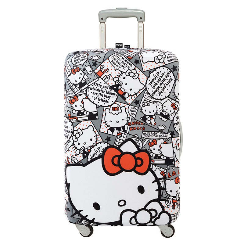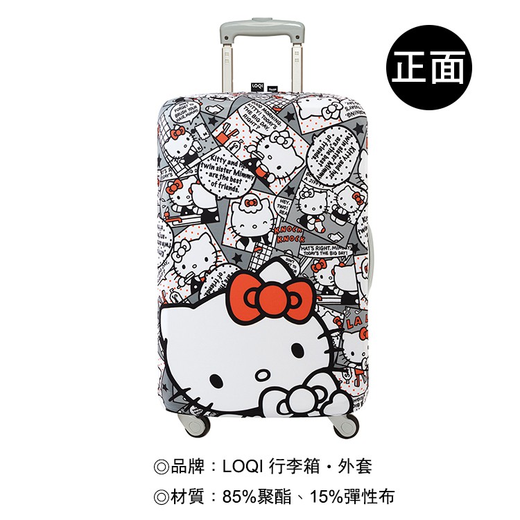 LOQI 行李箱外套【Kitty漫畫灰】行李箱保護套、防刮、高彈力
