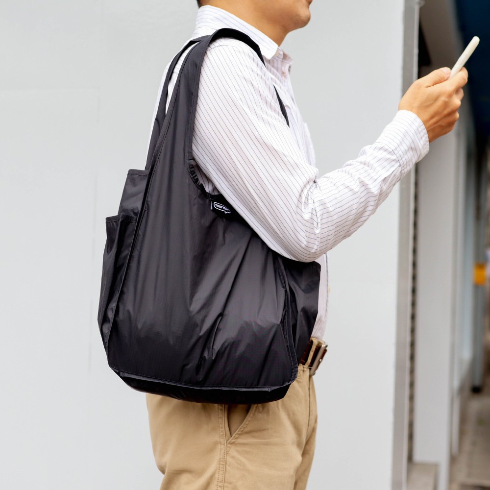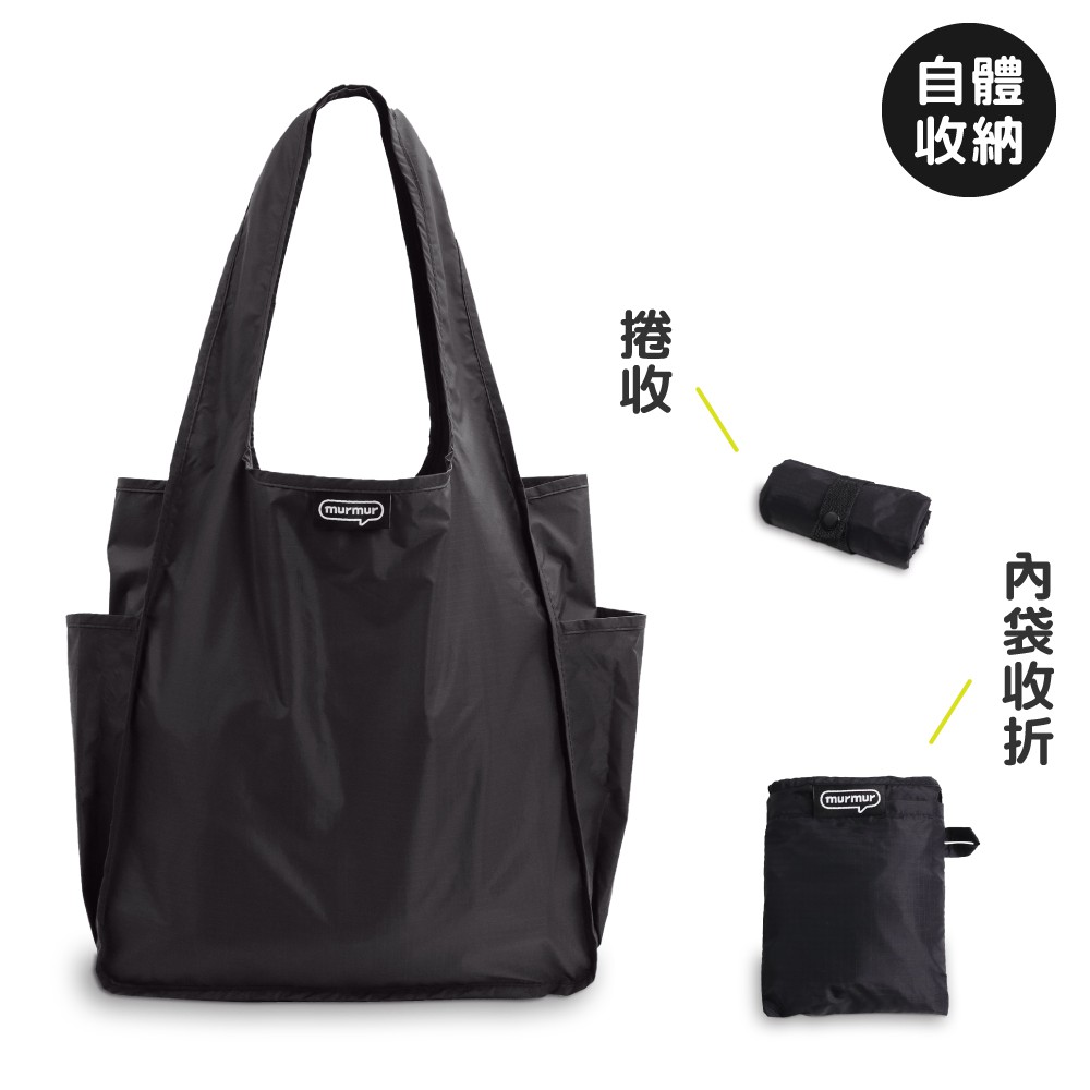 【murmur官方】 A4環保購物袋-黑色(雙側快取口袋、可收納、袋口兩段式安全扣帶)