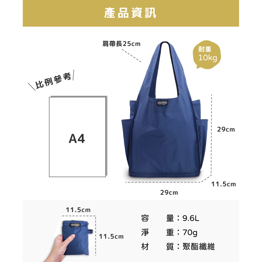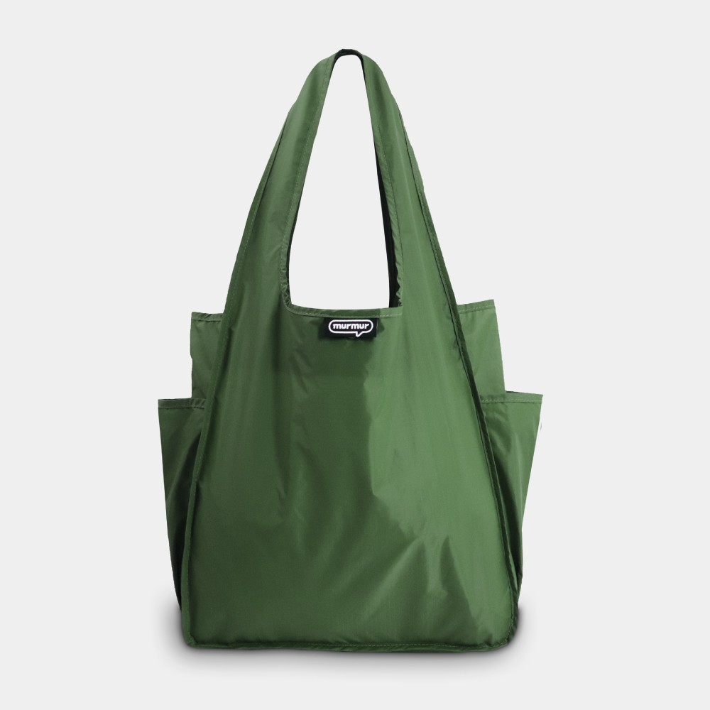 【murmur官方】 A4環保購物袋-軍綠(雙側快取口袋、可收納、袋口兩段式安全扣帶)