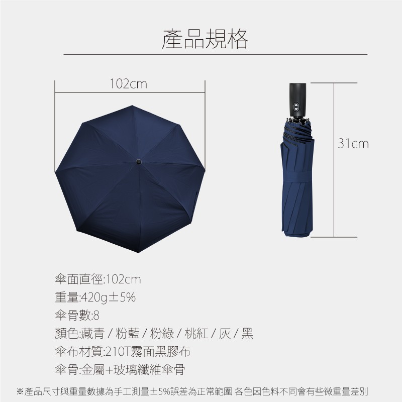 【買一送一】傘霸 都市輕旅 抗UV八骨黑膠防風自動晴雨傘 (桃紅色)
