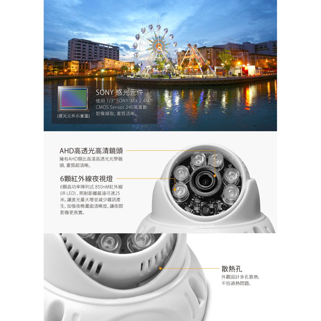 全視線 TS-AHD83D 室內日夜兩用夜視型 AHD 1080P 6顆 紅外線 LED 攝影機