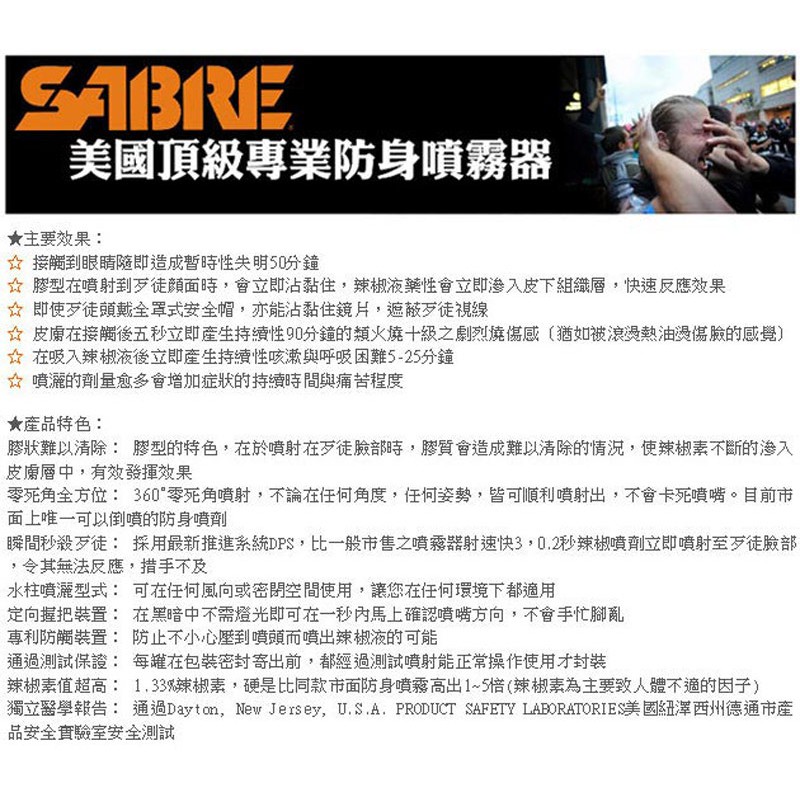 SABRE沙豹 防身噴霧器 - 360°執法膠型 (52CFT10-GEL) 防狼噴霧 (效期至:2030/6)