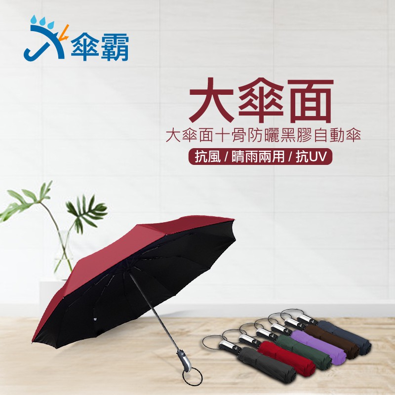 【福利品】傘霸 大傘面10骨防曬黑膠自動傘