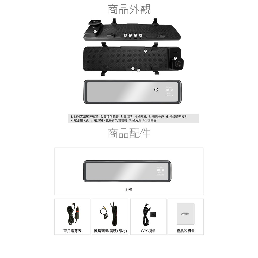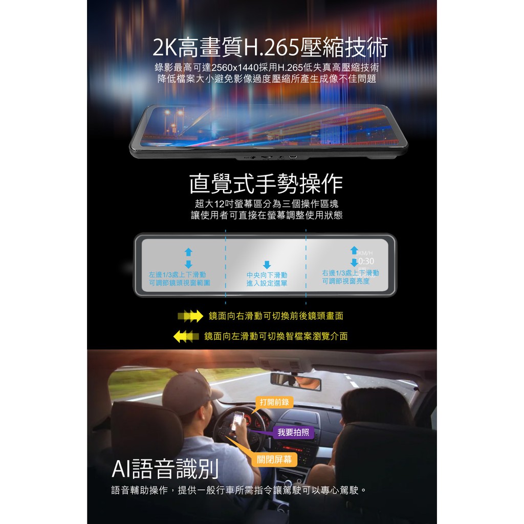 全視線W5 12吋大螢幕2K高畫質SONY感光元件流媒體GPS測速預警電子後視鏡