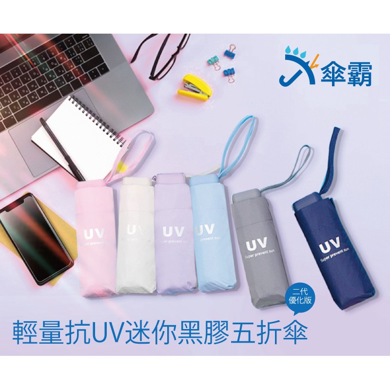 傘霸 二代超輕量迷你黑膠五折雨傘
